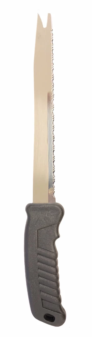 Measuring 8″ in length, this handy frozen food knife is a must-have for your food prep station. Professional quality, it offers a smart design with exceptional sturdiness and control.It is made with a surgical stainless steel blade with a cutting edge for easy cutting. Also equipped with a sturdy handle, it is able to withstand heavy use without the worry of hand fatigue or strain. Blade length is 8″, Overall knife is 13″