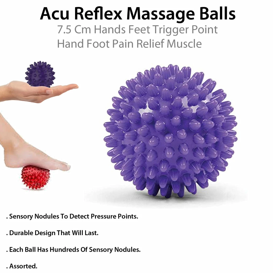 Acu Reflex Massage Balls 7.5 cm Hands and feet have many acupressure points. Rolling our Acu Reflex Balls in your hands or under your feet will result in a highly stimulating massage. Each ball has hundreds of sensory nodules. (assorted colors may ship) Includes: 1 X Acu Reflex Massage Ball 7.5 cm