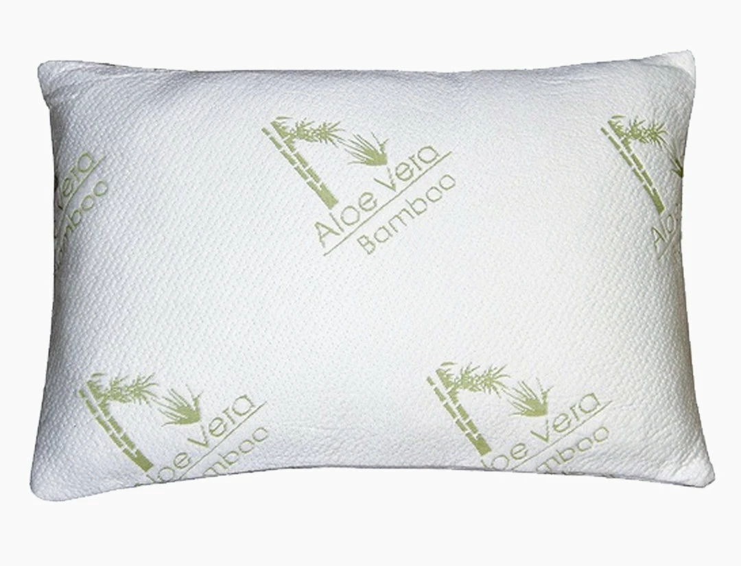 Rest your head on this incredibly soft, yet firm and moldable pillow that will suit any sleeping style. The aloe vera and bamboo cover is luxuriously soft, hypoallergenic, and remains cool throughout the night. After removing pillow from package, allow several hours for it to return to its normal state. The cover is machine washable with cold water/tumble dry low heat. Covering: 40 % Bamboo, 60% Polyester. Memory Foam Filling