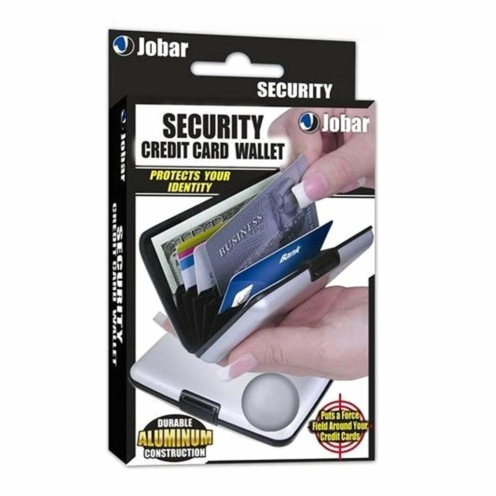 Jobar Aluminum Security Credit Card Wallet (Blue) Amazing wallet blocks RFID scanning on your credit cards to prevent identity theft. Tough solid aluminum wallet keeps your credit cards safe. Opens to reveal a six-pocket accordion file to hold credit cards, ID, cash and more. Comes in 3 colors, Silver, Blue and Red. This listing is for the Blue credit card wallet Features: Super light ultra-thin ultra-durable Virtually industructible Weather resistant For men and women Includes: 1 x Jobar Aluminum Security Credit Card Wallet (Blue)