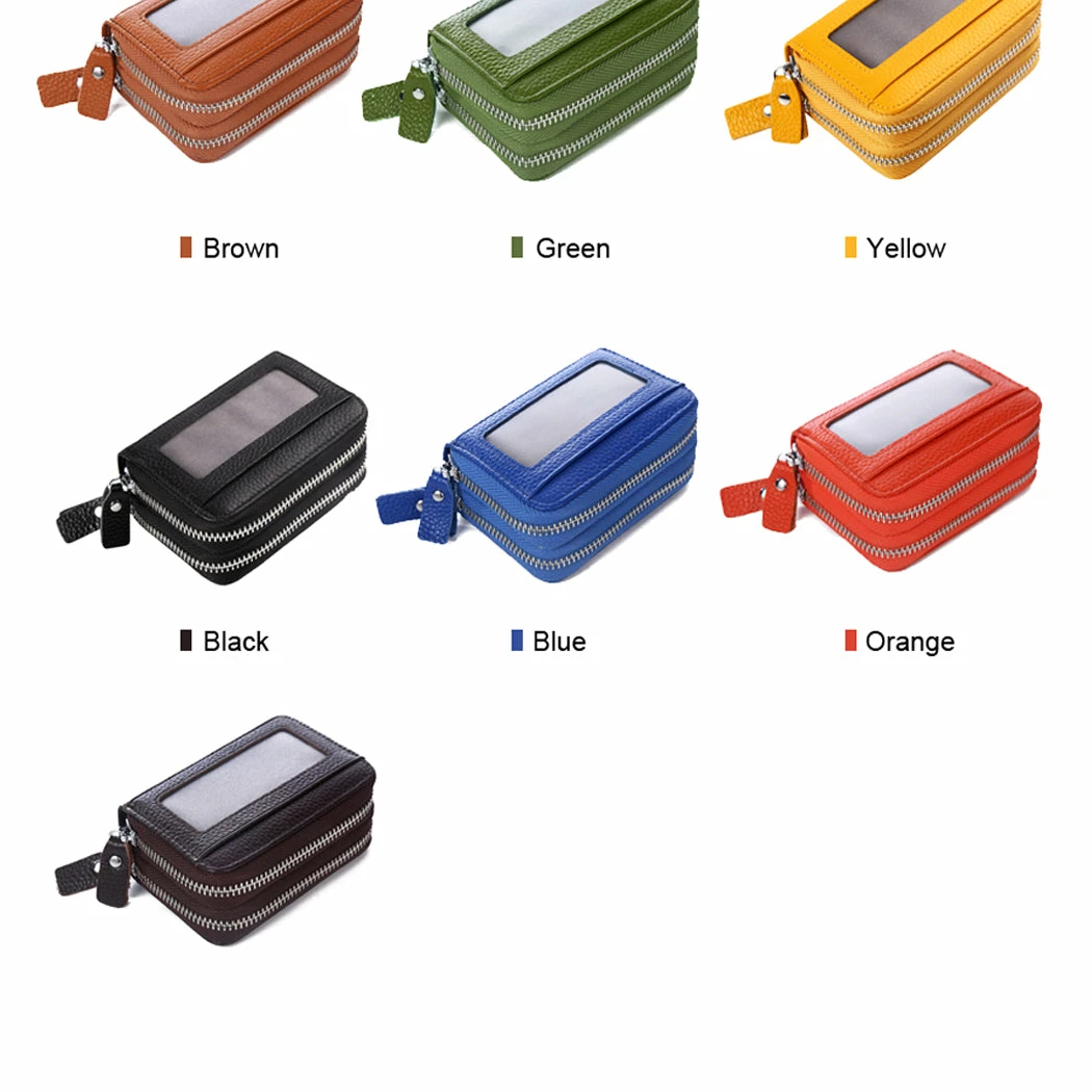 This wallet is a stylish and trendy way to stay organized on-the-go. This leather wallet features two zip around compartments for extra secure storage. The first compartment includes 12 divided pockets where you can store anything from cash to gift cards.The exterior of the wallet features a clear finger glide ID window.These accordion wallets have twelve spots to secure your credit cards . Also has a clear cover for drivers licenses. The wallets are leather and durable.