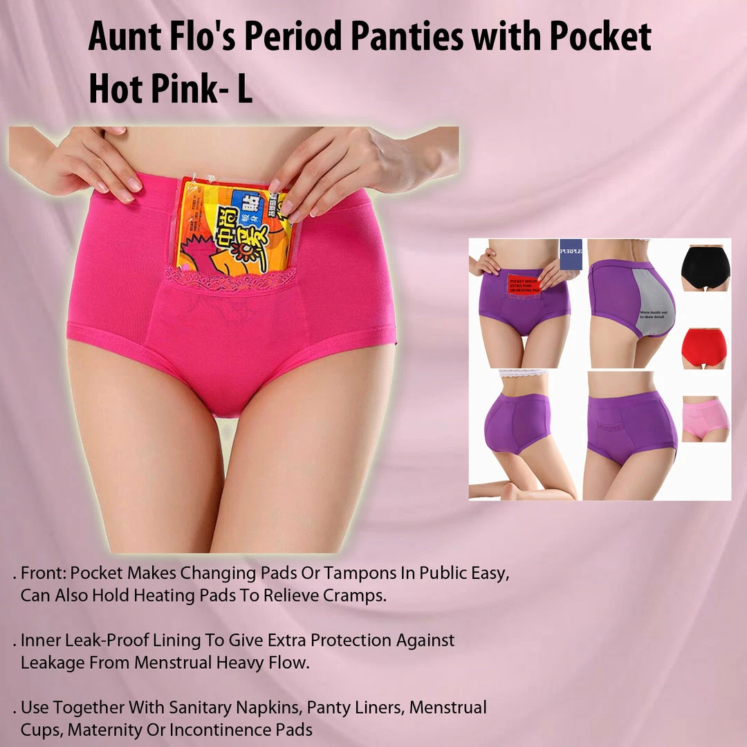 TVTimeDirect Aunt Flo’s Period Panties With Pocket- Hot Pink- L Clothing & Accessories