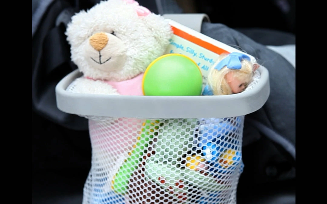 Kiddie Catch-All is the perfect accessory for your car, truck or minivan! Fill it with books, toys, games, snacks, sippie cups…whatever your child wants is now right at their fingertips with the Kiddie Catch-All. Never worry about picking things off the floor while driving again! And no more taking your eyes off the road! Keep your car organized, your family safe and your children occupied with the Kiddie Catch-All. Order one today!It even fits on the side of strollers!