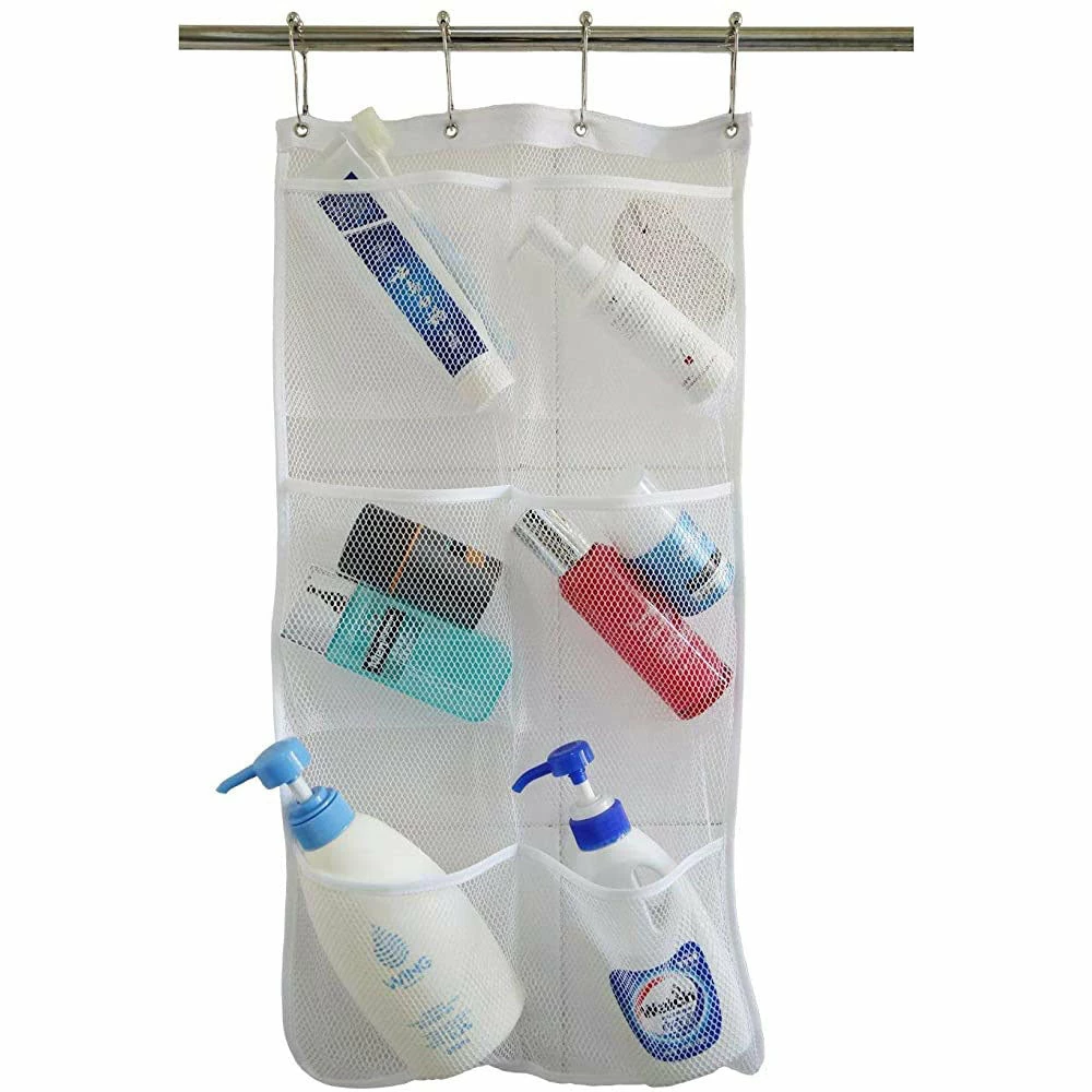 This hanging shower caddy will fix nicely over any curtain rod for your shower. The mesh shower caddy has six mesh pockets and three sturdy hooks to hand over your shower rod. Great to keep things organized and in reach. Keeps showers and bathtubs looking clear as a whistle.