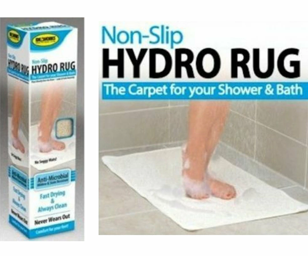 Hydro Rug Shower Stall adds comfort to your feet and prevents slipping in the shower. Eliminating soggy mats, this quick drying rug has eight suction cups to ensure stability and soothing, sponge-like material to provide comfort. Ideal for children and seniors, the Hydro Rug is perfect for any size shower stall with its textured surface for slip-resistant bath and shower safety.