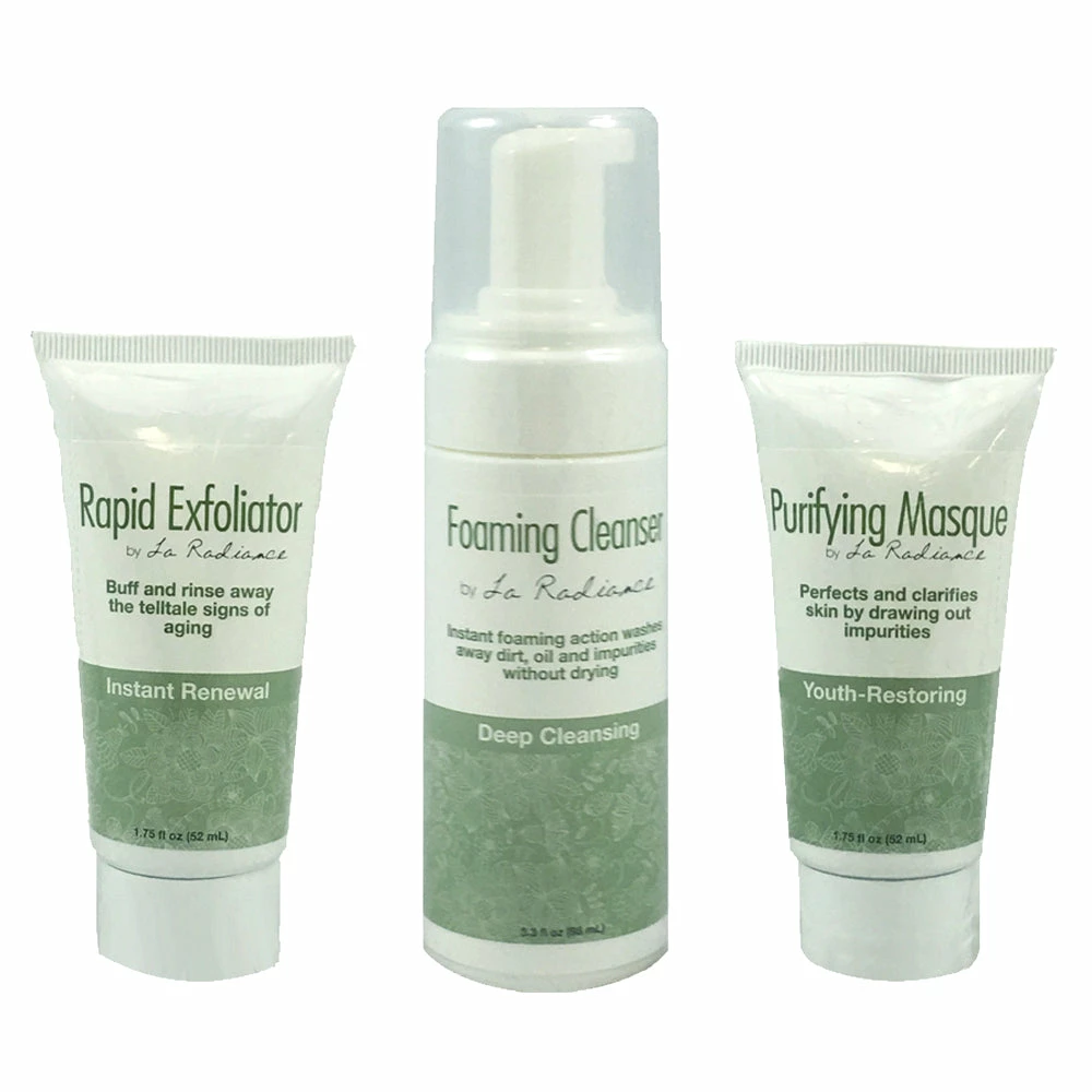 You can feel it, but you can’t always see it. that inner radiance that makes your skin positively glow. At La Radiance, we want to help let your inner glow shine out so the world will always see you at your best. Includes: Foaming Cleanser .3 fl. oz., Rapid Exfoliator, 1.75 oz. and Purifying Masque, 1.75 fl. oz.