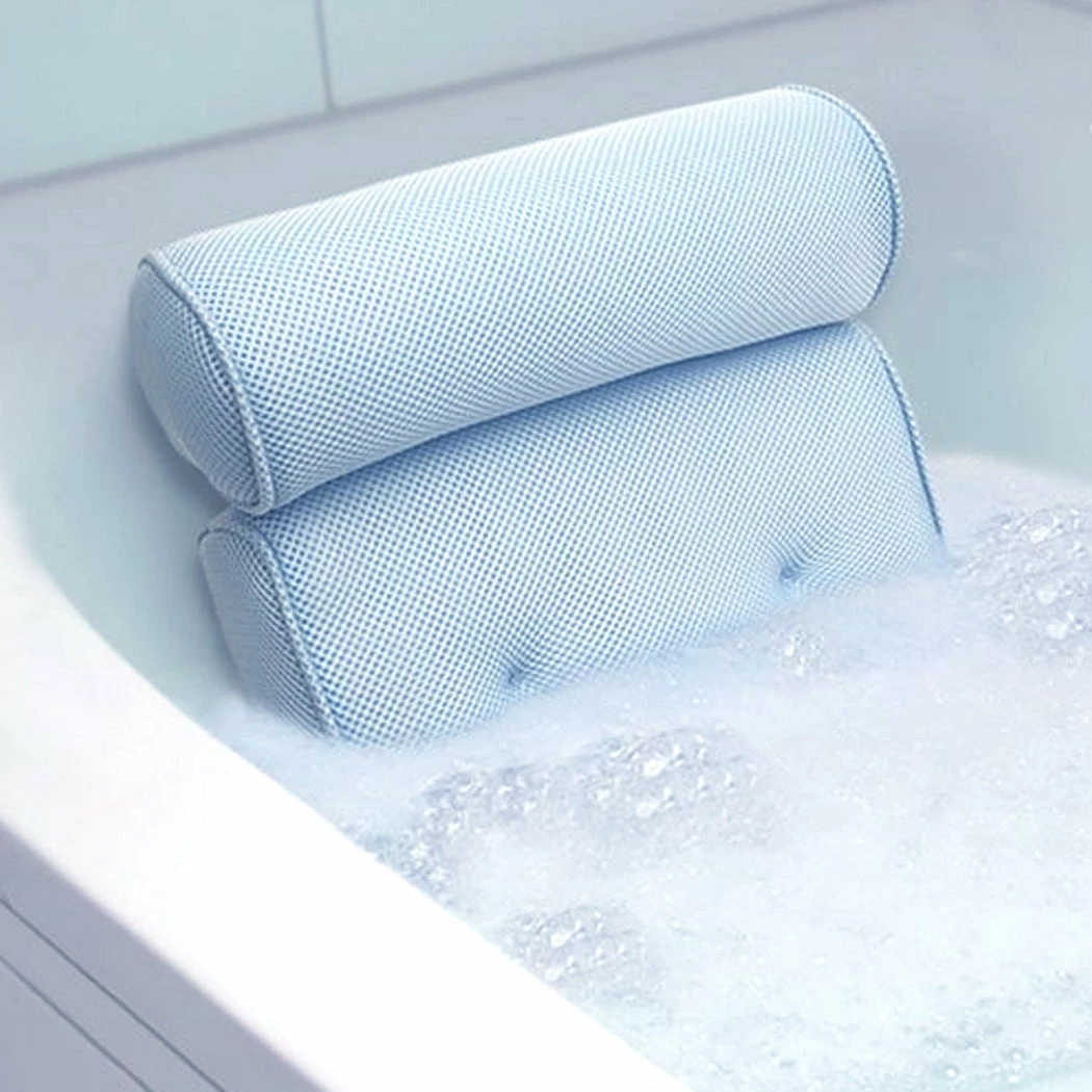 This Quick Dry Bath Pillow with Suction Cups and Quick Drying Design provides extra support for your head, neck and back while you bathe. Its mesh construction allows water and air to flow through for quick and easy drying. Four suction cups in back keep the pillow in place. Polyester with polyfill. 13″W x 4″D x 14″H