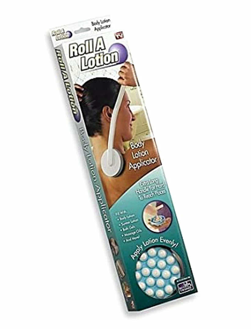 Body Lotion Roll Applicators- Set of 2 This amazing new applicator applies lotion smoothly and evenly with a gentle yet powerful massaging action. The extra long handle is perfect for hard to reach places. Just fill the reservoir with your favorite product. This Lotion Applicator has been precision designed to glide over the skin and release an even layer of lotion while it’s 19 roller applicators give you a massage. When finished, place the air tight cover over the heads to keep the solution from drying out. Treat your body to the luxurious feel of your favorite lotion. Features include: Easily reaches back Great to reach ankles & feet Soothes sore muscles Extra long handle Just add you favorite lotion Hangs for easy storage No mess Massaging action Measures 3.75 x 17.25 x 2 inches Fill with: Body lotion Suntan lotion Bath gels Massage oils and more! Includes: 2 x Body Lotion Roll Applicators ******COLOR MAY VARY FROM PICTURE*****