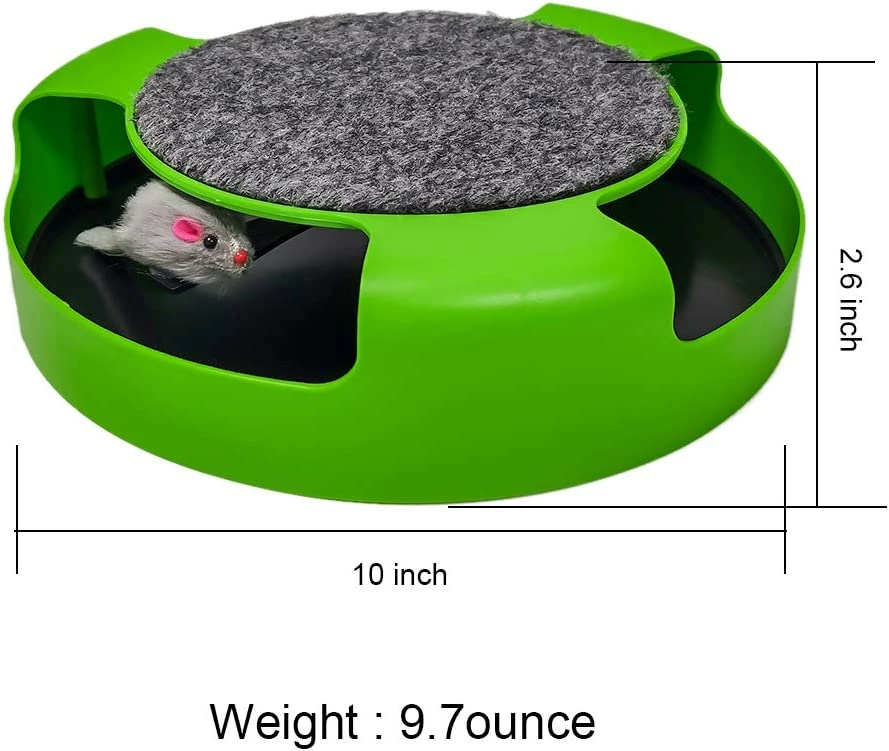 Two In One Cat Spinner Toy: Top felt pad which is a special wear-resistant material can be used as a cat scratcher. Mouse will rotate quickly when cats paw touching it, The more the cat wants to catch the mouse, the harder it is to catch it, and the fun is endless
