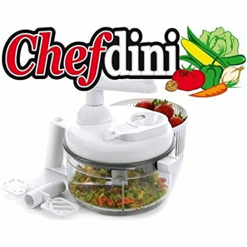 Armed with triple unified action, ChefDiniTM is the only fruit and vegetable processor that can do it all! Not only can it chop, mix, slice and dice your food like magic. With its six-piece accessory kit, you can transform it into a meat slicer, Julienne slicer, beater/blender, juicer, egg-white separator and shredder/grater. It’s THAT versatile! Why clutter your kitchen with countless appliances when you can use ChefDiniTM to prepare your meals? It’s even easy-to-store and dishwasher-safe