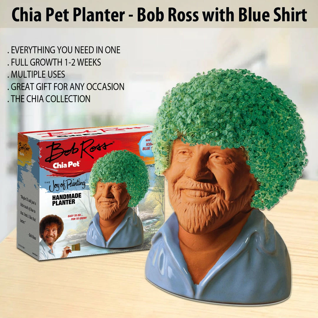 TVTimeDirect Chia Pet Planter – Bob Ross With Blue Shirt Chia Pets