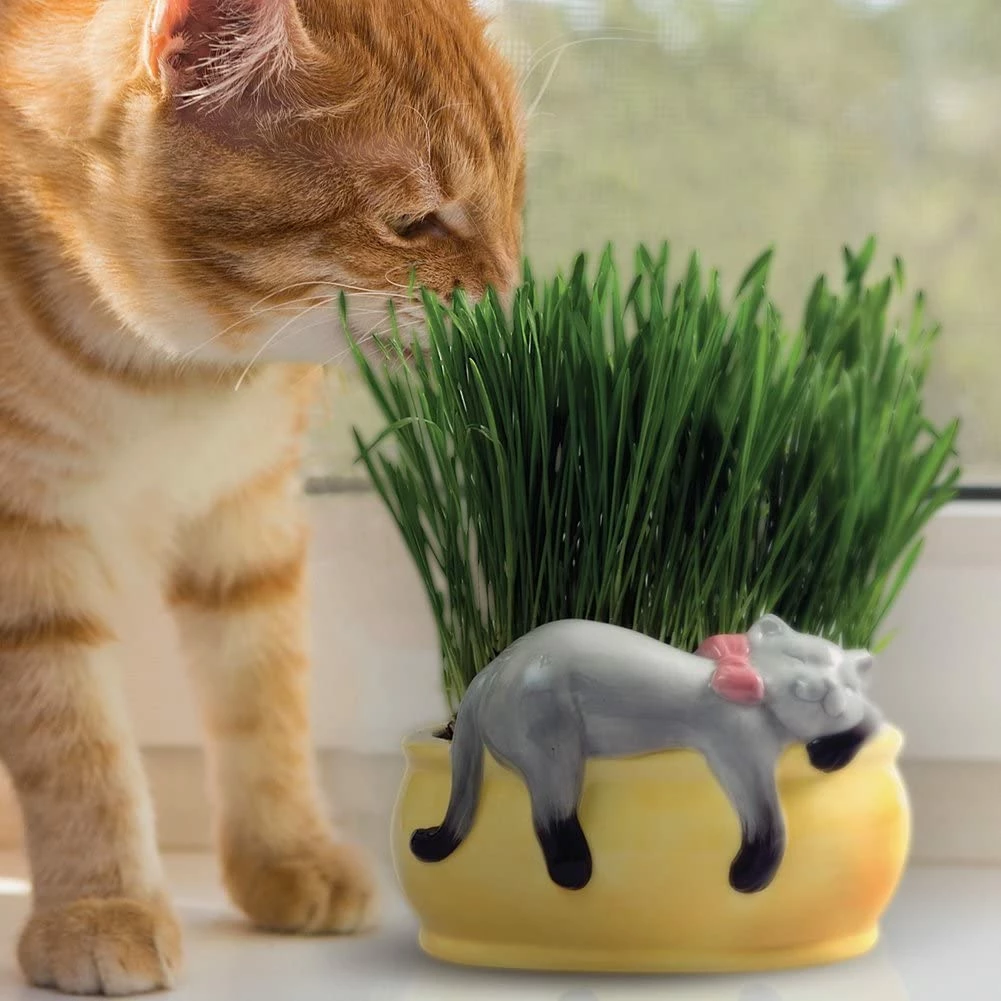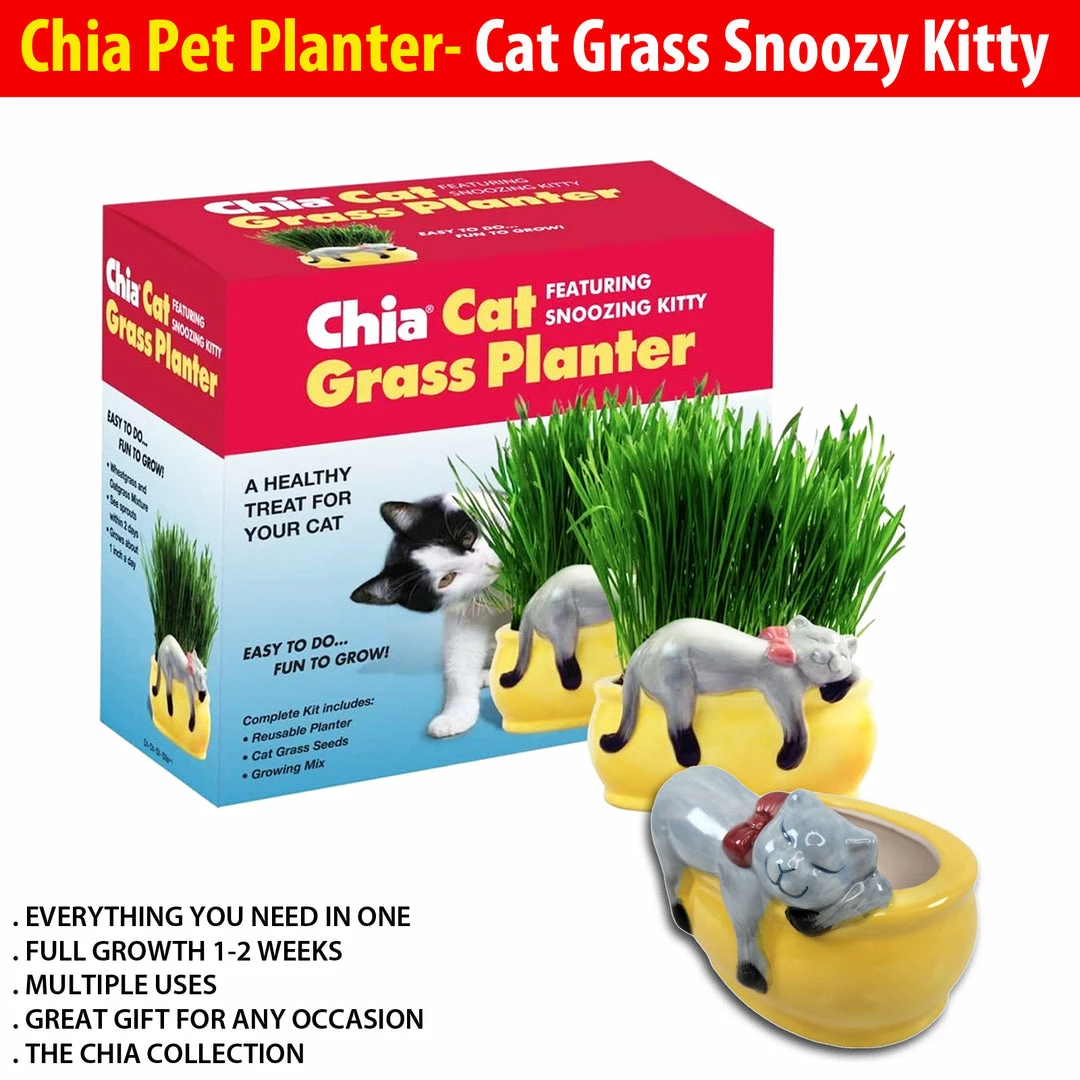 TVTimeDirect Chia Pet Planter – Cat Grass Snoozy Kitty Chia Pets