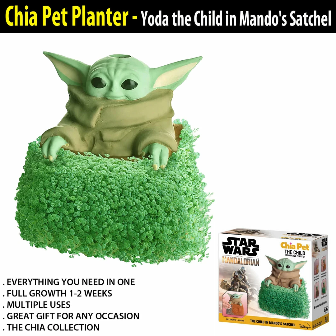 TVTimeDirect Chia Pet Planter – Star Wars Yoda The Child In Mando’s Satchel Chia Pets