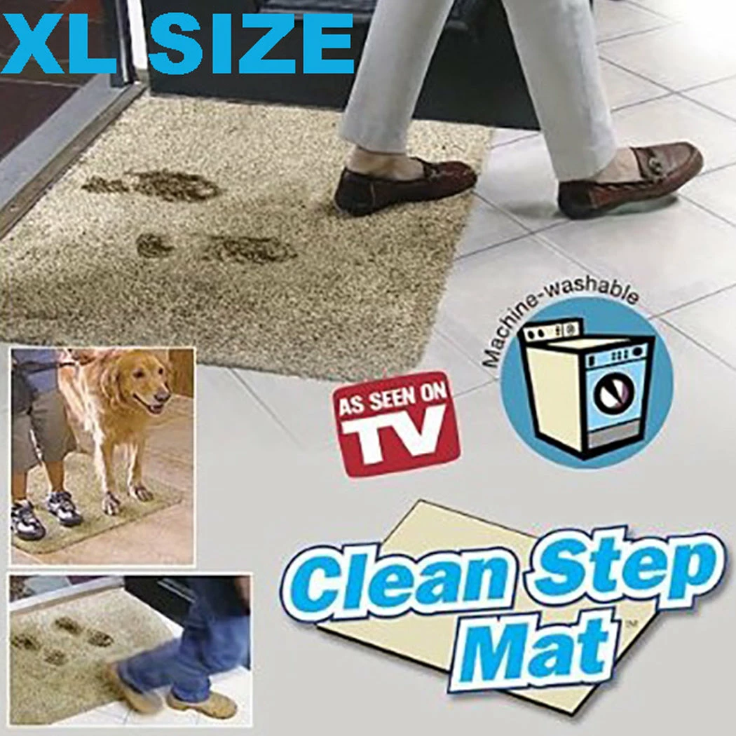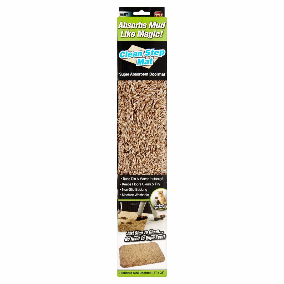 Clean Step Mat XL Super absorbent doormat. Absorbs mud like magic! Just step to clean, no need to wipe your feet. Clean Step Mat XL absorbs mud like magic! Clean Step MatXL, the super absorbent doormat traps dirt and water instantly, keeping floors clean and dry. Non-slip latex backing won’t slip or scuff floors. Low profile design so doors won’t get stuck.