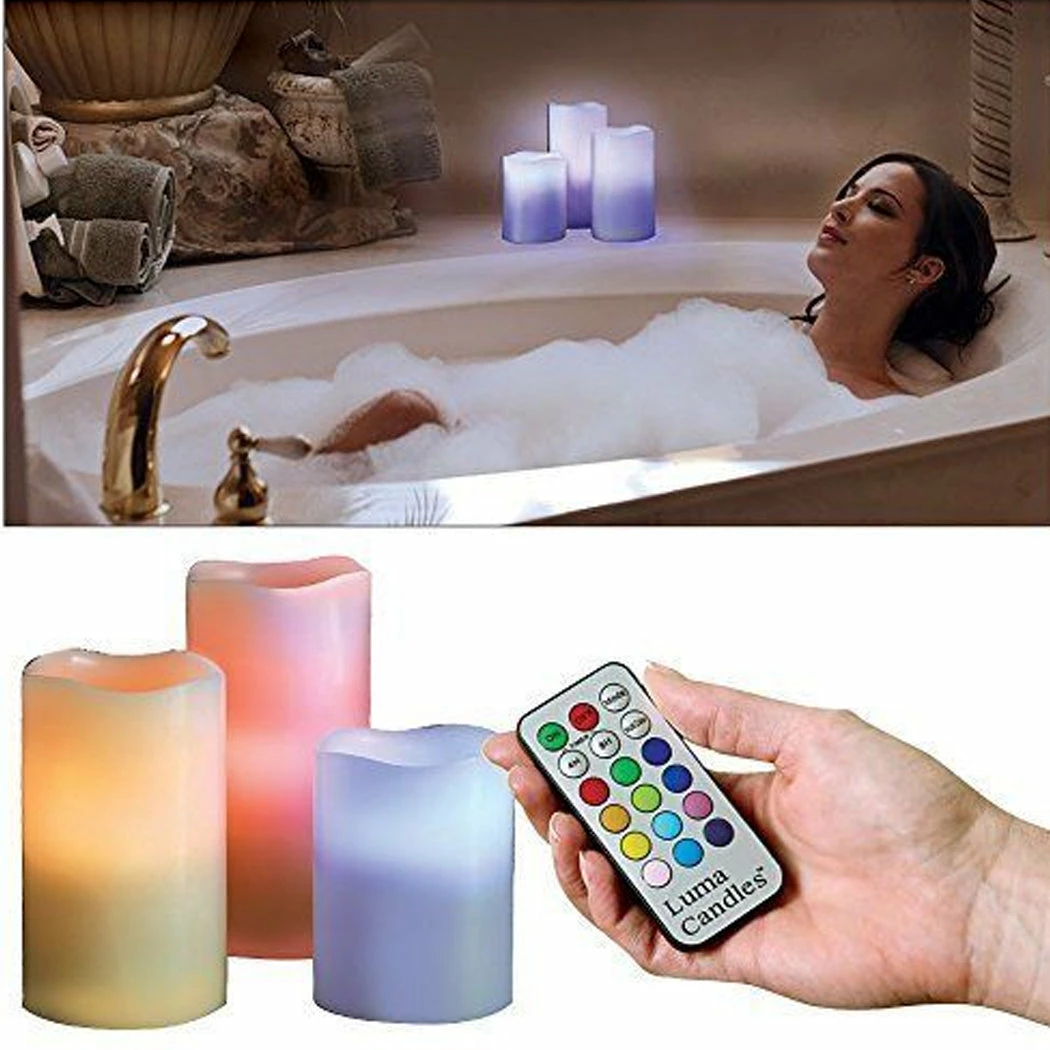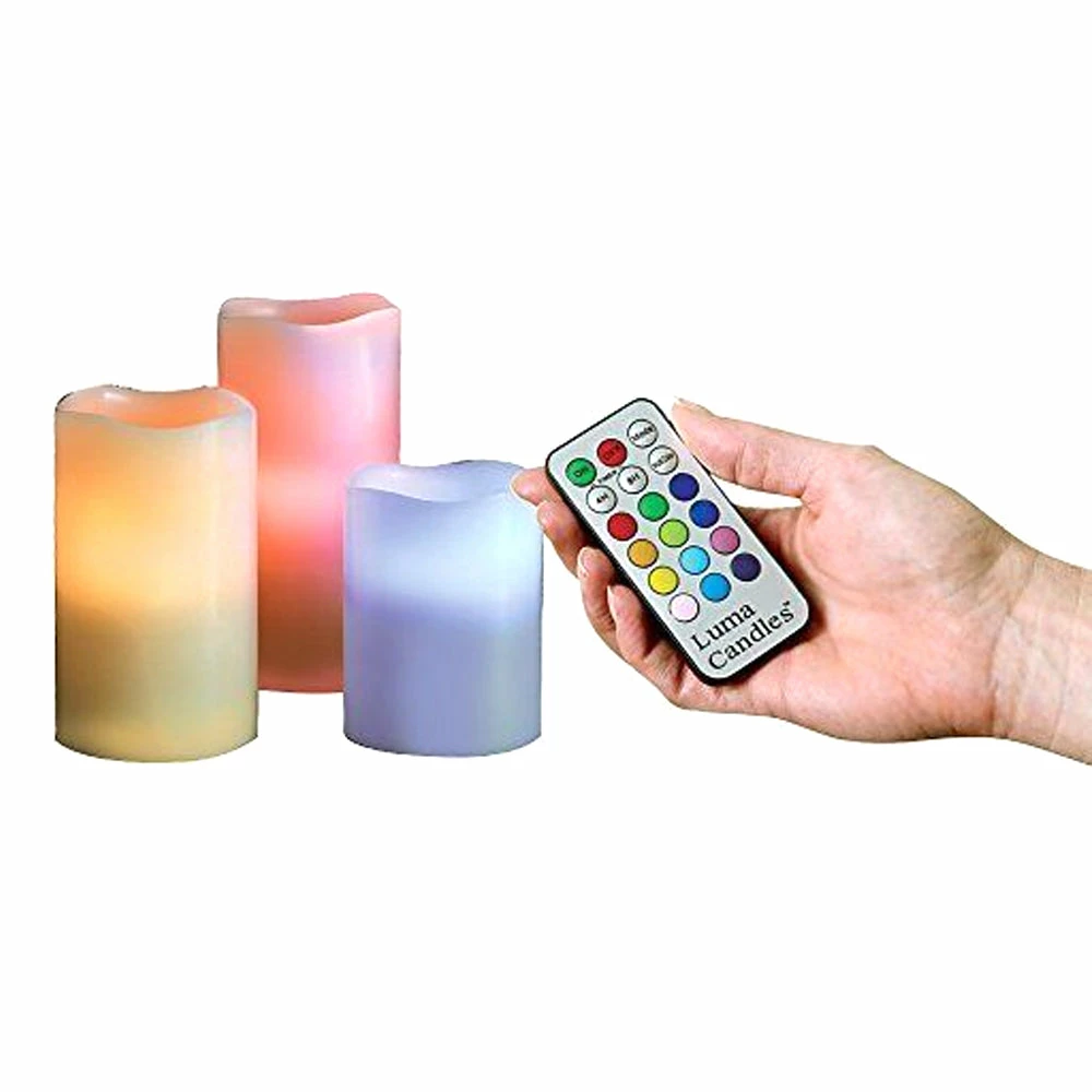 Color changing Luma Candles. A color for all occasions. Relax and enjoy the light show with our Color Changing Luma Candles. Set the atmosphere for any occasion with a relaxing multicolored glow. Vanilla sent makes any room pleasant.(Set/3)Luma Color Changing LED Flameless Real Wax Candles