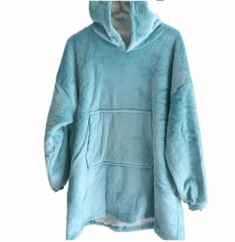 Comfortable oversized hoodie that combines the warmth of a cozy blanket with the comfort of your favorite hoodie. Made from ultra-soft Fleece and lined with ultimate in warming Sherpa comfort! Ultra Plush Wearable Blanket Hoodie is a one size fits all to keep you cozy & Warm from head to toe! It’s reversible so you can choose your favorite look. There’s even a big, Roomy pocket to keep what you need right at hand! Whether you are relaxing on the couch, running errands, or outside cheering on your favorite team, huggle hoodie will keep you warm and toasty! Just slip it on and the chill is gone! Size: 80 x 90cm