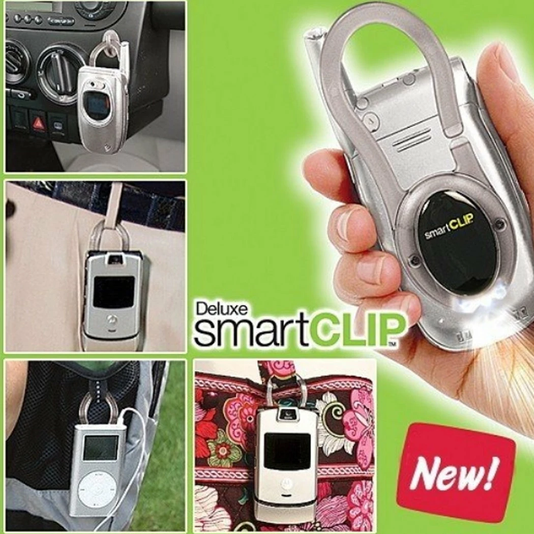 Deluxe SmartClip Universal Cell Phone Clip W/ LED Light Keep your cell phone or iPod/MP3 player at hand No more fumbling in your pocket or purse, no more dropped phones! Great for belt loops, bags or your dashboard, it definitely keeps phones handy. Includes peel-and-stick hook that is perfect for dashboards, allowing not only quick access to your phone but also hands-free talking. Universal- fits all cell phones. Durable and secure. Deluxe SmartClip fits any cell phone, iPod, PDA and more – just peel and stick to securely attach (uses 3M adhesive). Smart Clip hangs on belt loops, purses, bags and more for convenient access. Its built-in super bright LED light is great for reading menus, finding key holes or as a flashlight. Ships in mail order packaging.