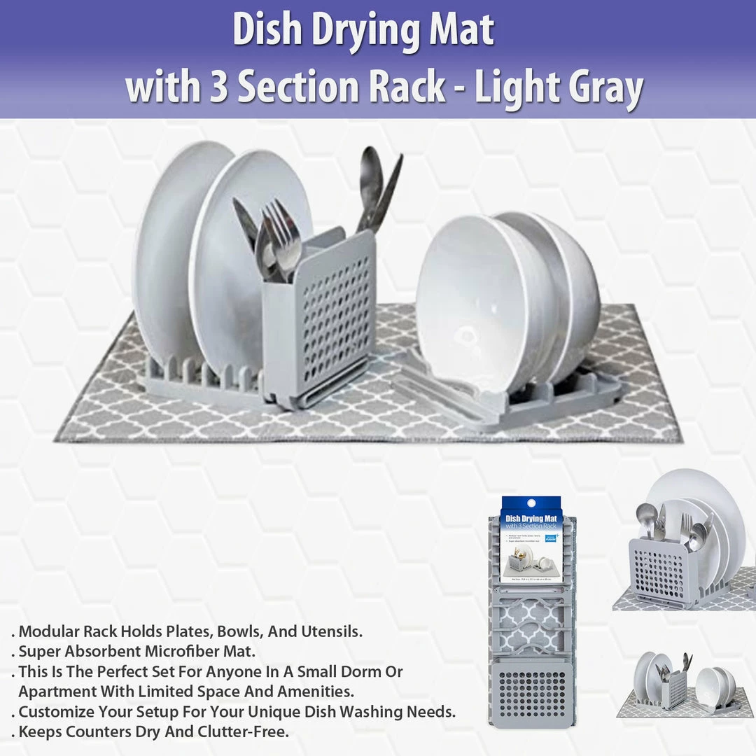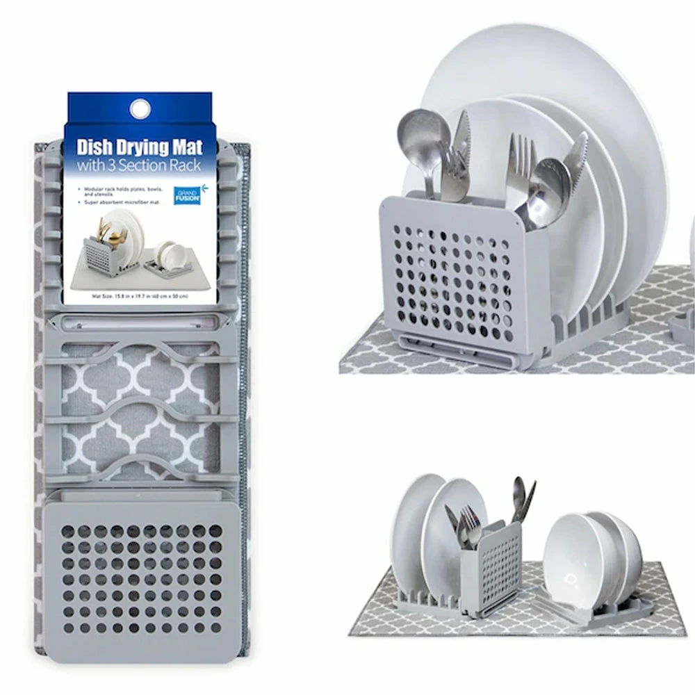 TVTimeDirect Dish Drying Mat With 3 Section Rack – Light Gray