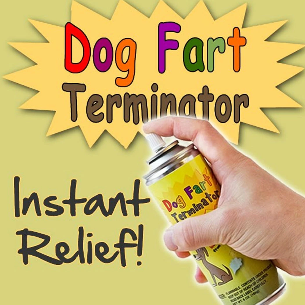 Dog Fart Terminator terminates the smell of dog farts fast. Dog Fart Terminator has fart firghting particles that get to the source of the smell of the fart and replacing it with a clean, fresh scent. Also great for other animal farts, beer farts, atomic farts, new and old farts. Directions: Point nozzle away from yourself or others. Insert extension tube firmly. Tear tab from trigger assembly. Hold can in upright position. Spray in short even bursts. Do not shake before or during use. Allow equipment to vent before re-energizing. DANGER Flammable. Contents under pressure. Contents of this container can ignite under certain circumtances. Do not use near fire, heat, sparks or store at temperatures above 120°F/49°C. Do not store can in enclosed vehicles, direct sunlight or other sources of heat. Do not puncture or incinerate container even when empty. Use only with adequate ventilation. Harmful or fatal if swallowed. First Aid: Eye Contact: Flush with water for 15 minutes. If irritation persists call physician. Skin Contact: Wash thorougly with soap and water. If irritation persists call physician. Inhalation: Remove to fresh air. If breathing is difficult get medical attention. Ingestion: Do not induce vomiting. call physician.