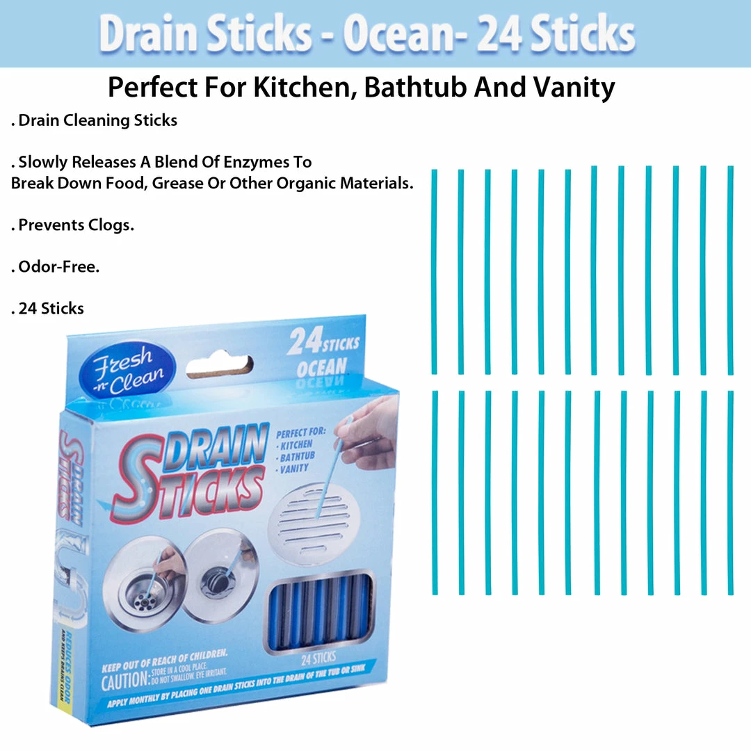 Drain Clean Stick is the super concentrated, drain cleaning and sanitation sticks that prevent clogs and bad odors. It is suitable to use in any drains in your home, just drop one stick per month.The clean stick breaks down and digests organic deposits and grease buildup and safe for plumbing and septic tanks. Perfect for kitchen, bathtub, and vanity. Apply monthly. 2 year supply. 24 drain sticks included.
