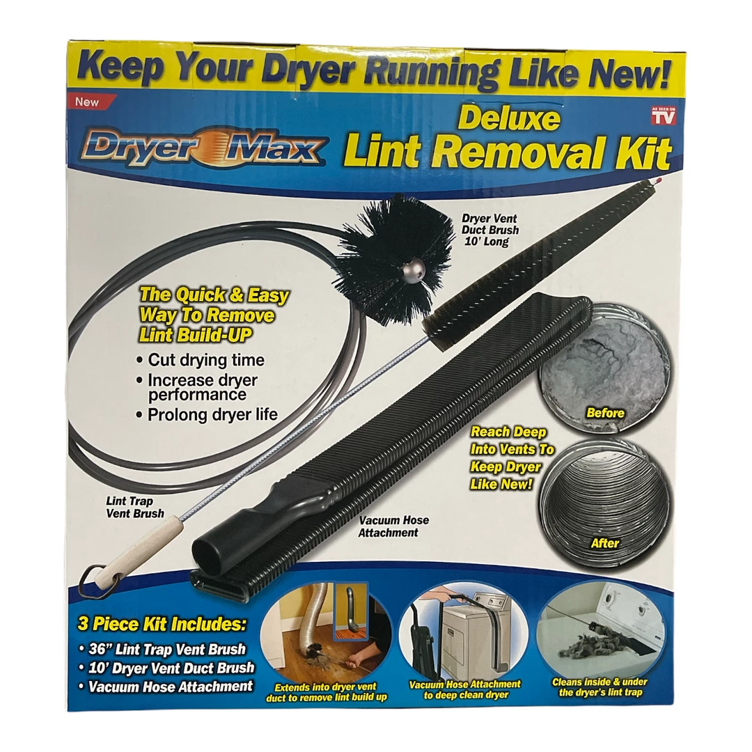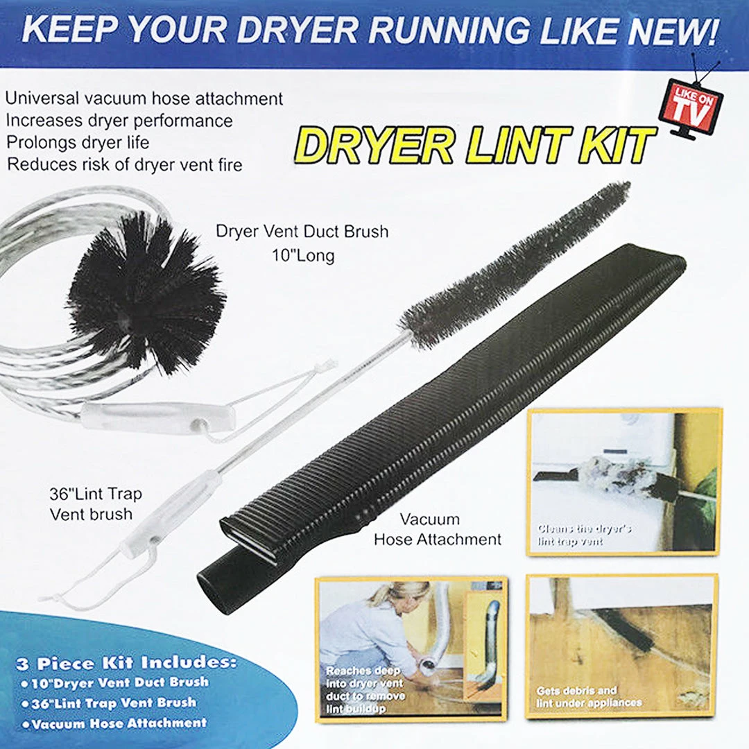 Kit Includes: 10″ Dryer Vent Duct Brush, 36″ Lint Trap Vent Brush and Vacuum Hose Attachment.
