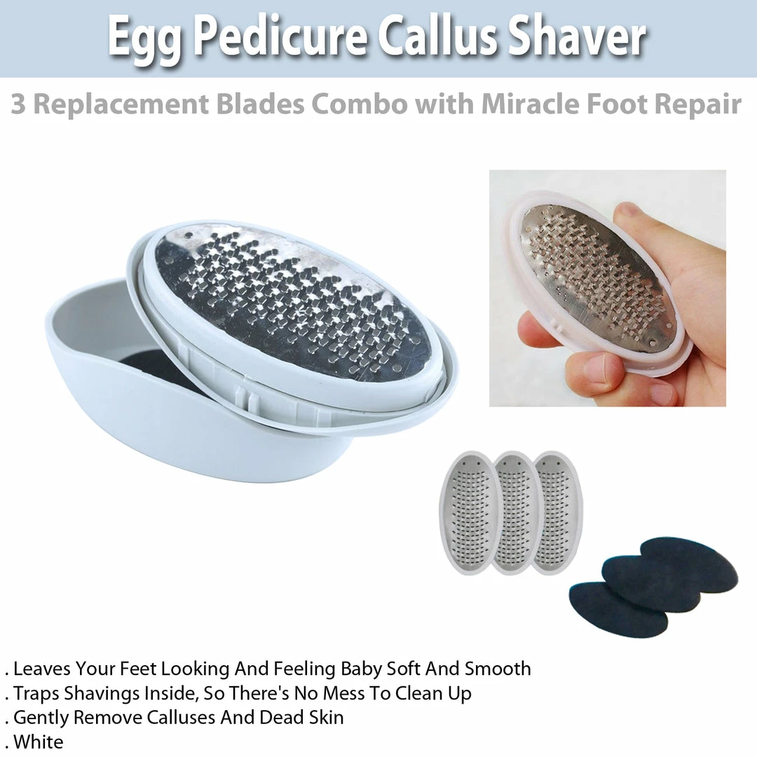 Egg Callus Shaver + 3 Replacement Blades Combo + BONUS Miracle Foot Repair