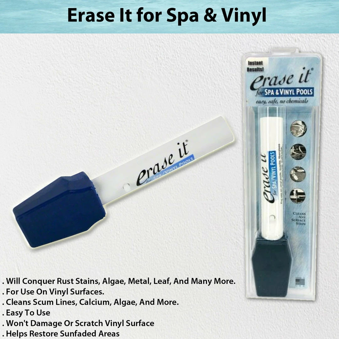 StainEraser, Inc. proudly presents their new line of cleaning products. Erase It offers an alternative cleaning solution from chemicals. Erase it products are easy to use, safe and provide instant results. Erase It for spas and vinyl pools will help restore sun-faded areas to new and will help restore dingy vinyl to new without damaging the pattern.