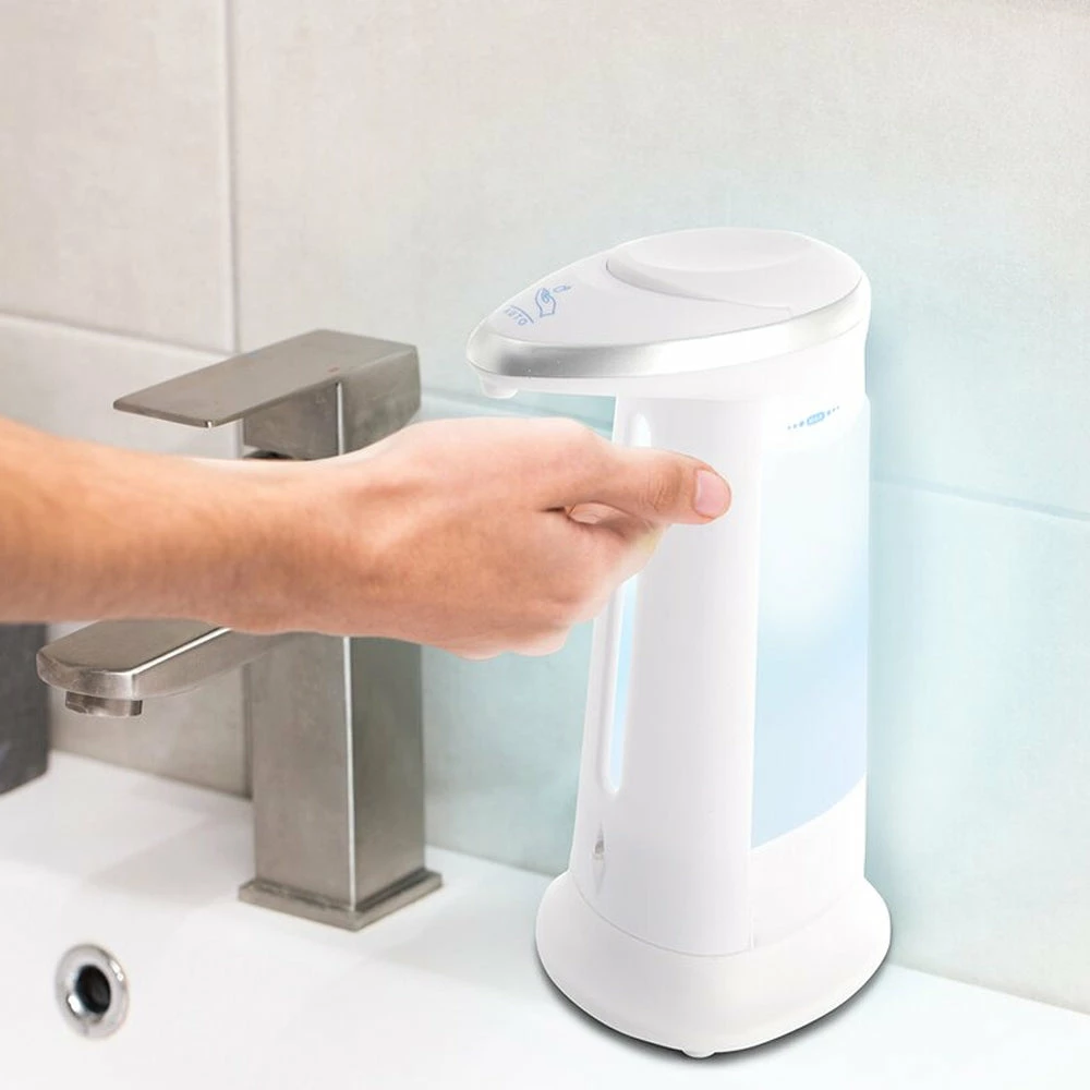 Never touch a dingy bar of soap again. This touch-free soap dispenser will pump liquid soap into you hands so you can wash your hands. Sanitary. Motion activated. Fits perfectly by any sink and looks sleek on the countertop. Can be used as a liquid hand soap or sanitizer dispenser.