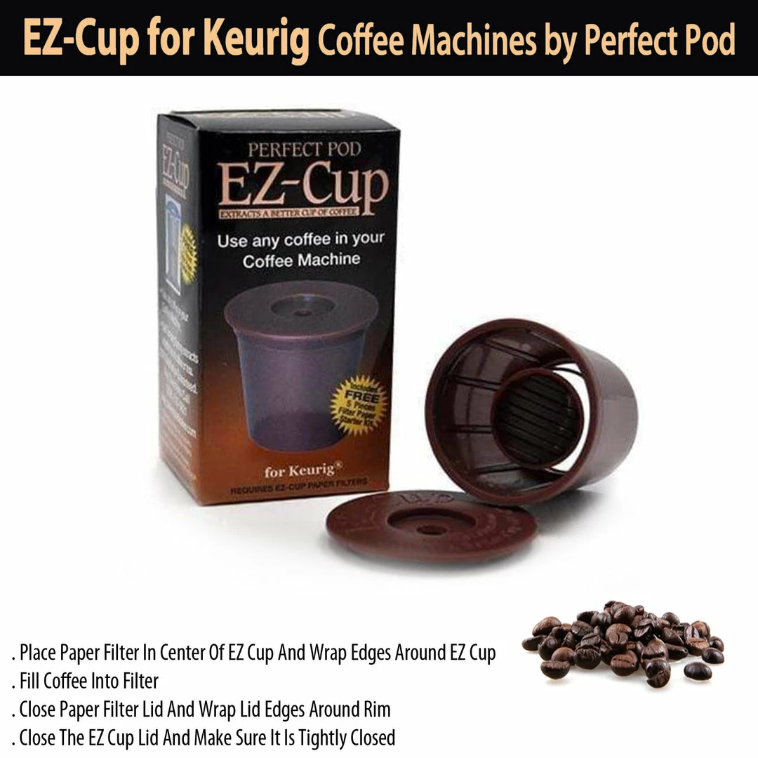 EZ-Cup for Keurig Coffee Machines by Perfect Pod Use any coffee in your Keurig Coffee Machines! Self tamping spring extracts a better cup of coffee or tea. The EZ Cup MUST be used with EZ Cup FILTERS (Sold separtaely). Simple to use and reuse! 1. Place paper filter in center of EZ Cup and wrap edges around EZ Cup 2. Fill coffee into filter 3. Close paper filter lid and wrap lid edges around rim 4. Close the EZ Cup lid and make sure it is tightly closed. Insert in your Keiurig machine as you would a K-Cup Requires EZ Cup paper filters **NOT FOR USE WITH KEURIG 2.0 OR THE VUE**