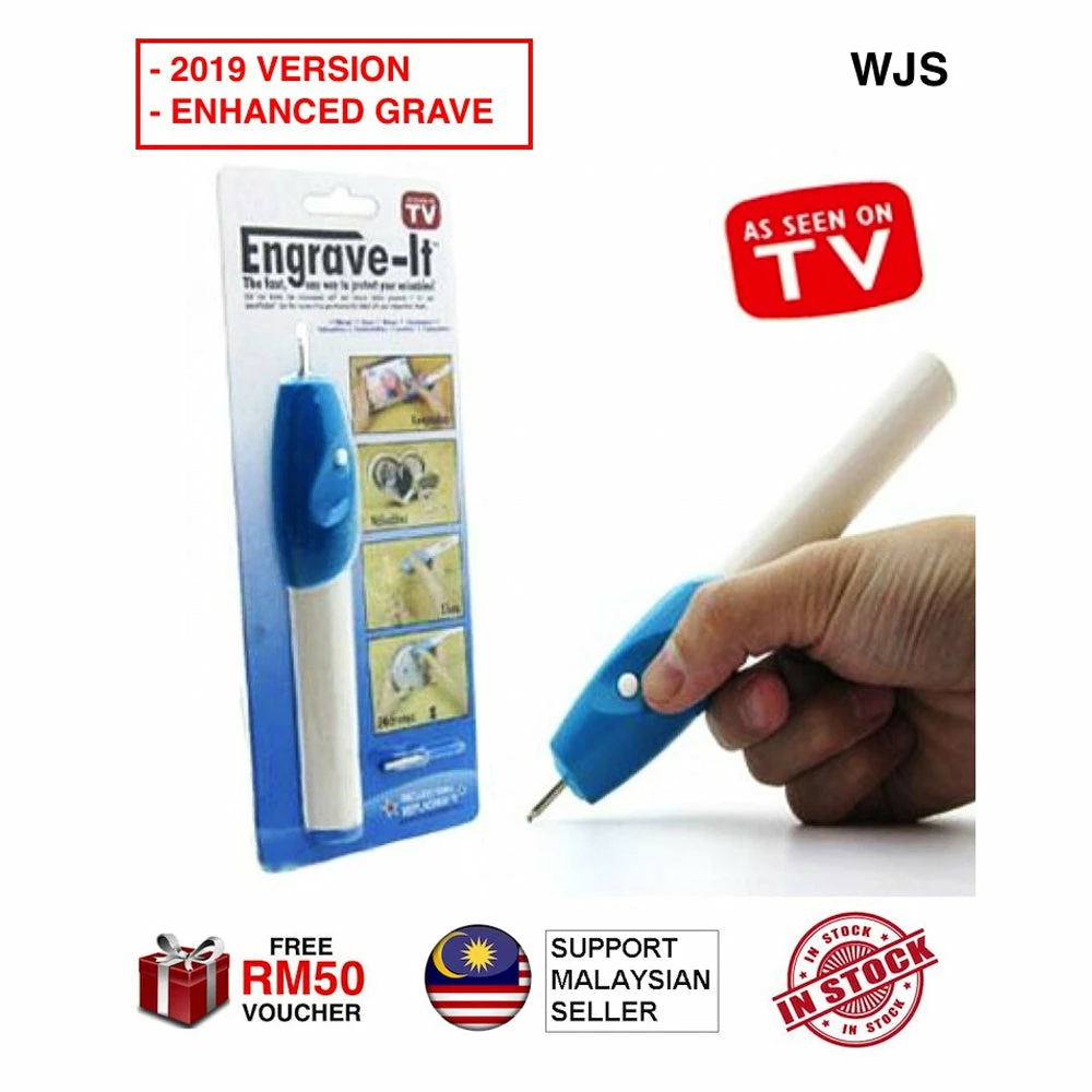 Engrave it Permanently label all of your important items! Engrave It engraving tool allows you to engrave nearly anything you can imagine on almost any type of surface: wood, metal, plastic, leather, glass and much more. Do you know that Law enforcement won’t return stolen property unless its identifiable? Use Engrave It to permanently label and protect your valuables. Safe and easy to use. Works just like a pen. Engrave your child’s lunch box or guard against theft by engraving your MP3 player. Engrave ornaments, silver pieces, lockets, rings and more. Great arts and crafts fun for the whole family. Personalize your keepsakes, Engrave It is an inexpensive alternative to costly engraving services! Includes: 1x Engrave-It Engraving Tool 1x Bonus Replacement Tip Uses 2 AA batteries (NOT included) Hold the Engrave It like you would a pencil, with your thumb over the control button. Press the control button in with your thumb. Applying slight pressure, press tool down on surface to be engraved. Hold it at a slight angle (like you would a pencil). To turn off simply release thumb pressure from control button. Works on: Metal Steel Wood Electronics Valuables Collectables Leather Computers And more…. (Safety Note: Always wear protective eyewear when engraving and wash hands after use. It is not recommended that you engrave electronic media such as CD’s, DVD’s etc because engraving on those materials may damage the media.)