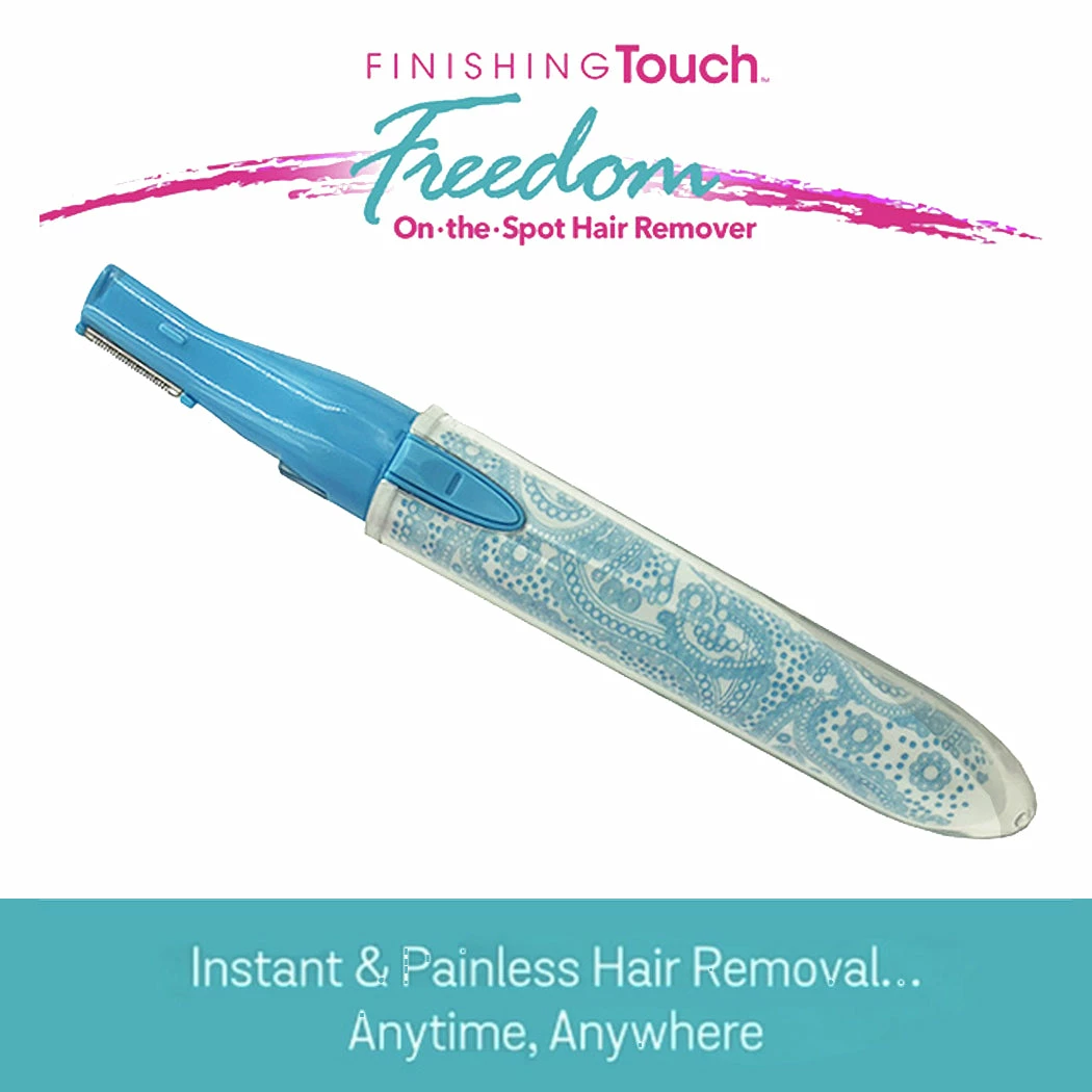 The Finishing touch Freedom Personal hair Remover Removes hair instantly and Pain-Free. It comes with Built-in Light, It Pivots and is Dermatologist approved. Also comes with a comb attachment.