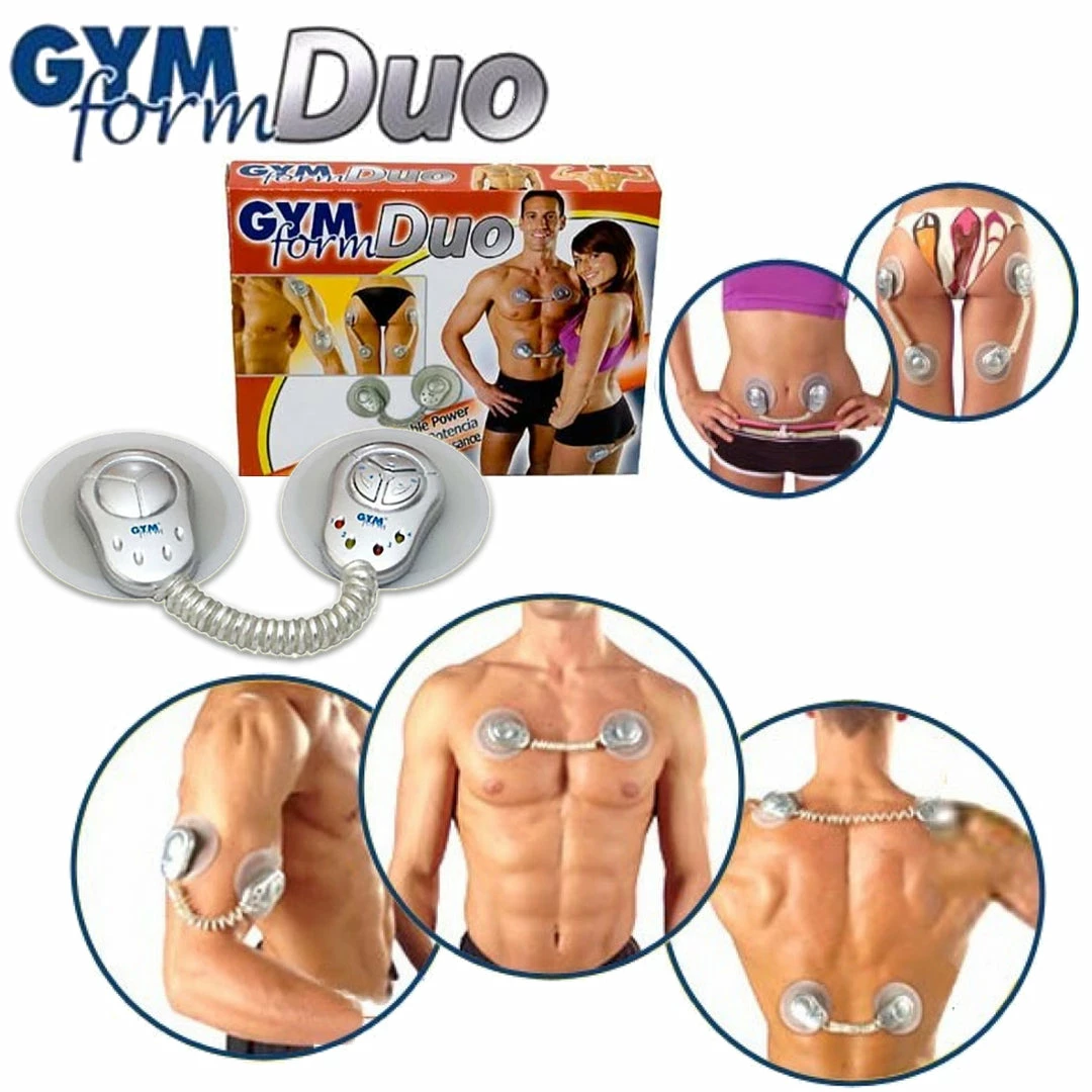 Gym Form Duo Muscle Stimulator Double the power, double the results! Cutting edge dual contact muscle stimulation system. The Gym Form Duo creates reciprocating contractions that provide continuous positive and negative resistance to the targeted muscles. For the fastest results you have ever had. Any muscle area, anytime, anywhere. Getting the body you want has never been this easy. Features: Define muscles Build strength Improve your figure Easy stick on wireless system 6 Muscle building programs 10 intensity levels per program Includes: 1 x Dual action Gym Form Duo