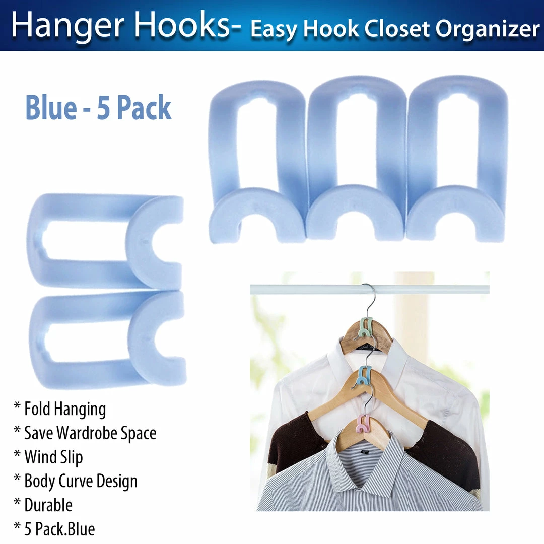 TVTimeDirect Hanger Hooks- Easy Hook Closet Organizer – Blue – 5 Pack Houseware