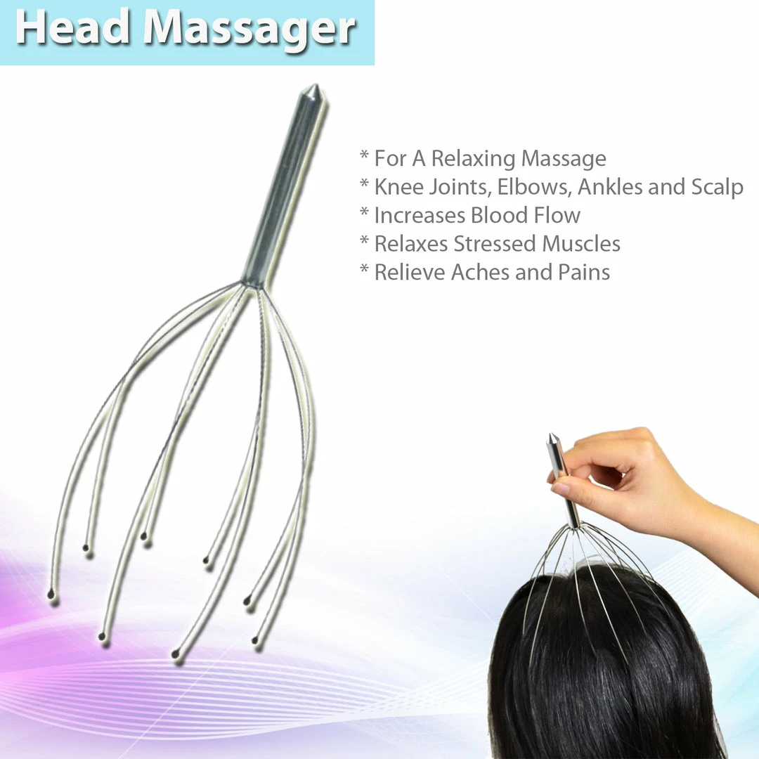 The Head Massager will send tingling sensations from scalp to toes and transport you to a more relaxing place! The custom fit fingers will bend to fit your head. Gently raise and lower the Scalp Massager for a relaxing massage. The smooth tips glide across the surface of your scalp. Use it on your knee joints, elbows, ankles and scalp.