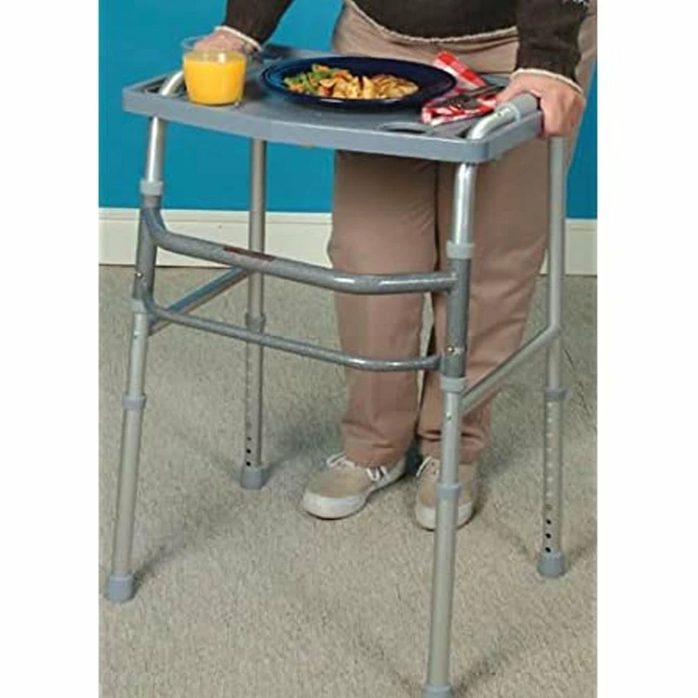The Walker Tray by Jobar International enables you to carry your dinner, magazines and crafts quickly and easily. It will help you turn your standard walker into a TV/transport tray. You can effortlessly secure beverages with two recessed cup holders. It allows you to prevent spills through raised edges.