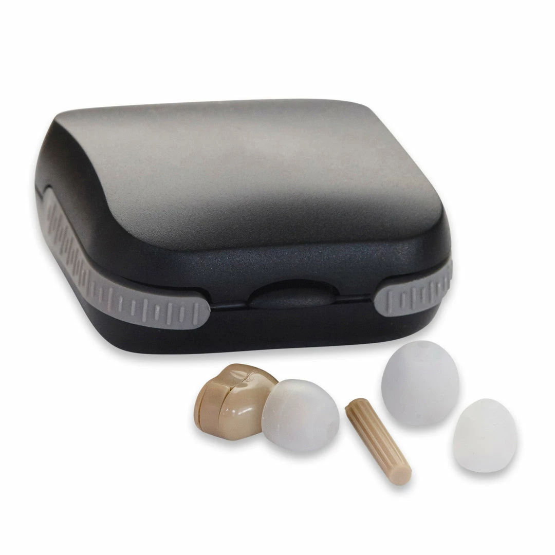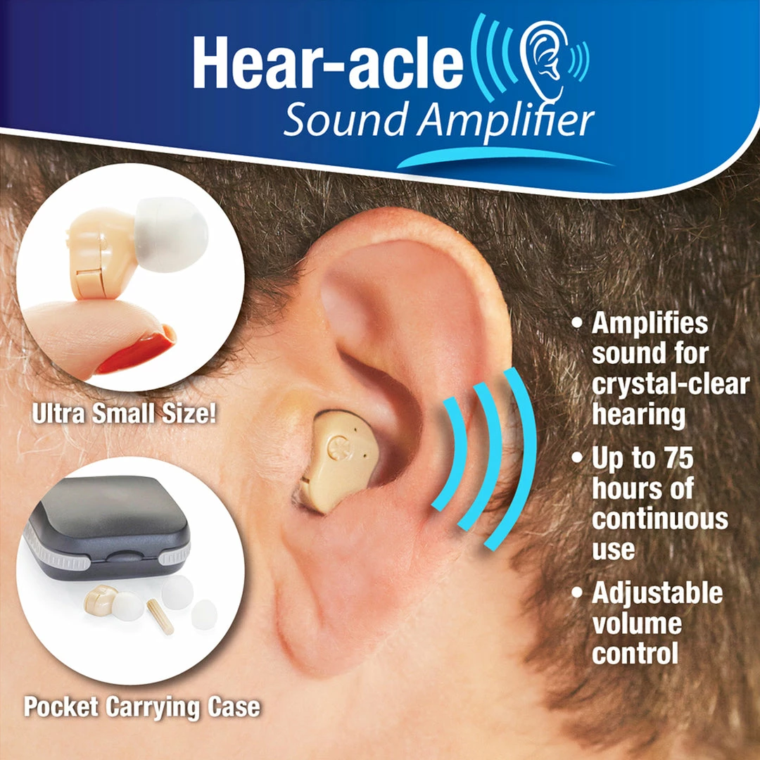 Hear-acle Sound Amplifier – The Hearing Miracle! Never miss a conversation again! Ultra-small, lightweight device amplifies sound up to 45dB for crystal-clear hearing. With adjustable volume control, comfortable ear pads in 3 different sizes, and neutral color for a virtually invisible look. Max. Sound Output: 120+_5dB