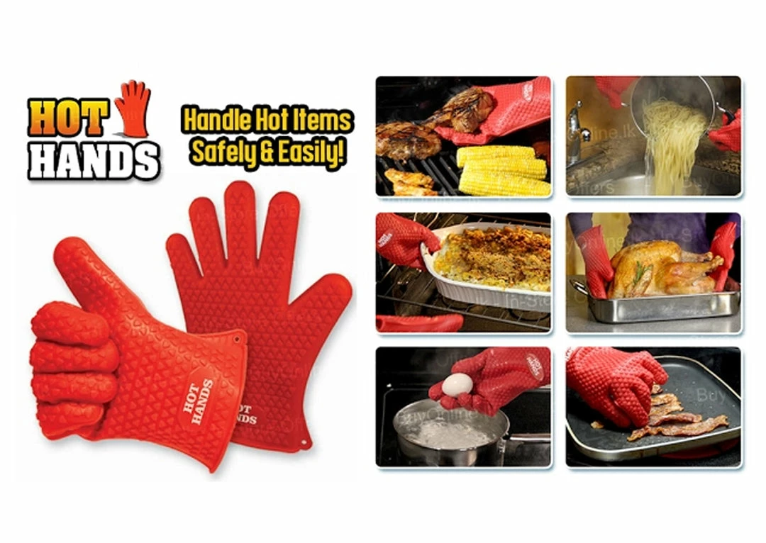 With Hot Hands Non-Slip Silicone Cooking Gloves you can grab, flip, & shred hot meals, veggies, seafood, and more. These gloves allow you to reach into water and ovens. Grip pots, pans, skillets, baking trays & more!