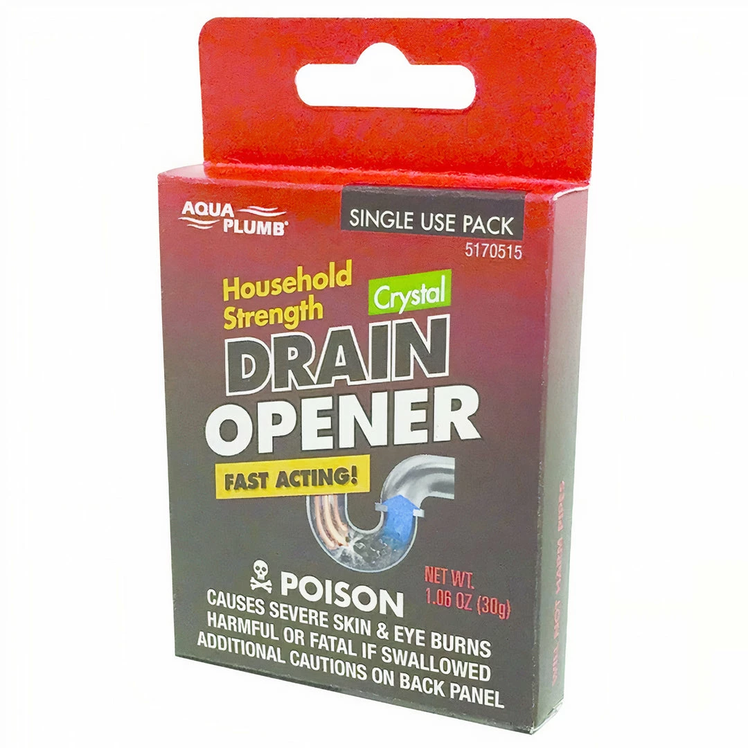 Power through clogged drains with this Household Strength Crystal Drain Opener. Each single use pack is fast acting to help clear up hair, grime and other plugged up gunk. Read and follow all directions on packaging.