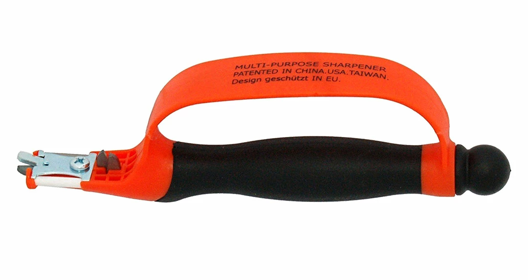 The Zenport KS06 8-inch long 6-in-1 tungsten carbide multi-sharpener allows you to sharpen the entire blade of pruners, scissors and knives. Soft-feel non-slip grip handle with a built-in safety hand guard. Cleaning sponge and lubricating/anti-corrosion oil store inside the handle. Includes an oil reservoir and applicator for your tools.
