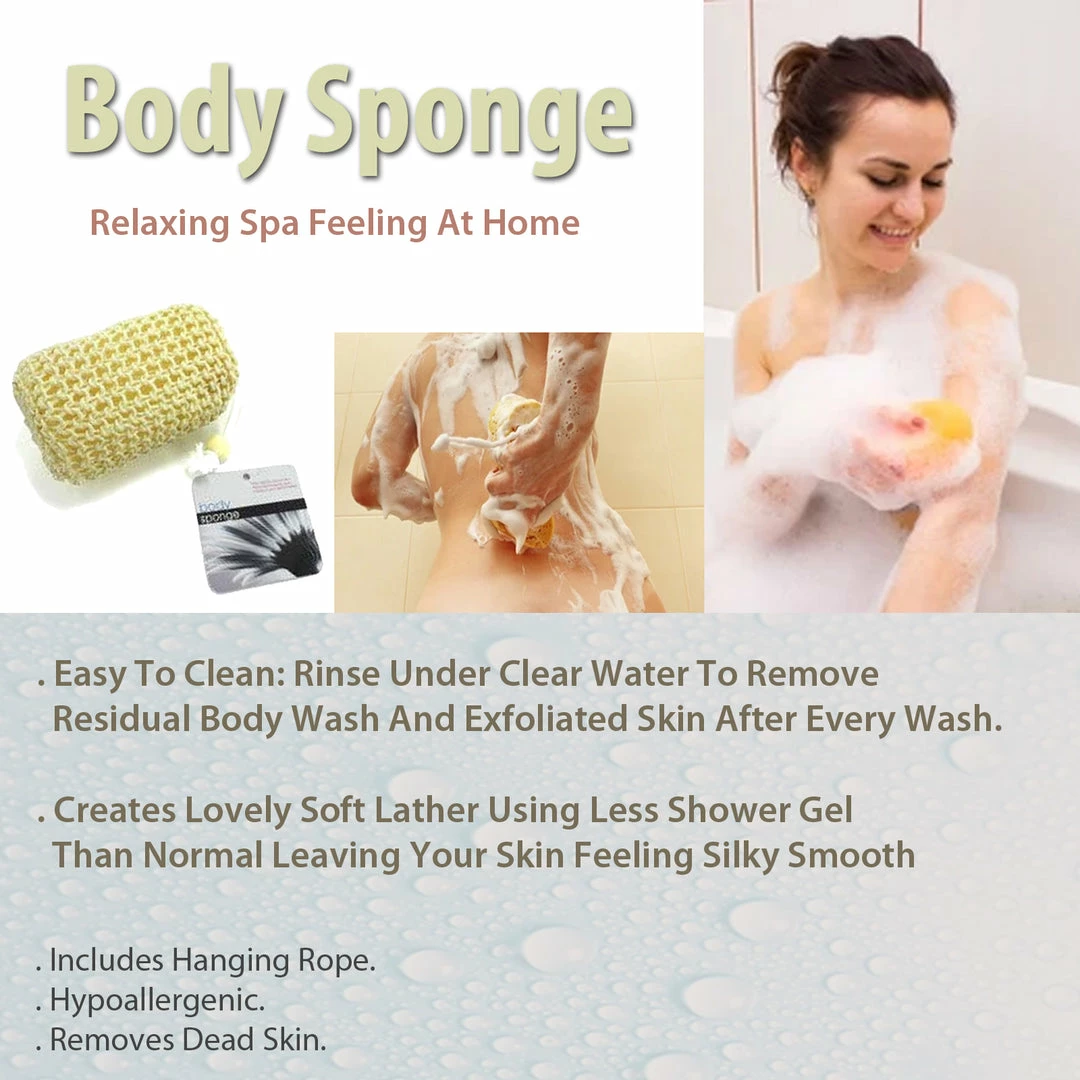 Get that relaxing spa feeling at home with these exfoliating Body Sponges featuring a design that is great for keeping skin looking healthy. Each sponge has foam inside with a textured net outside and a convenient hanging loop for shower storage.
