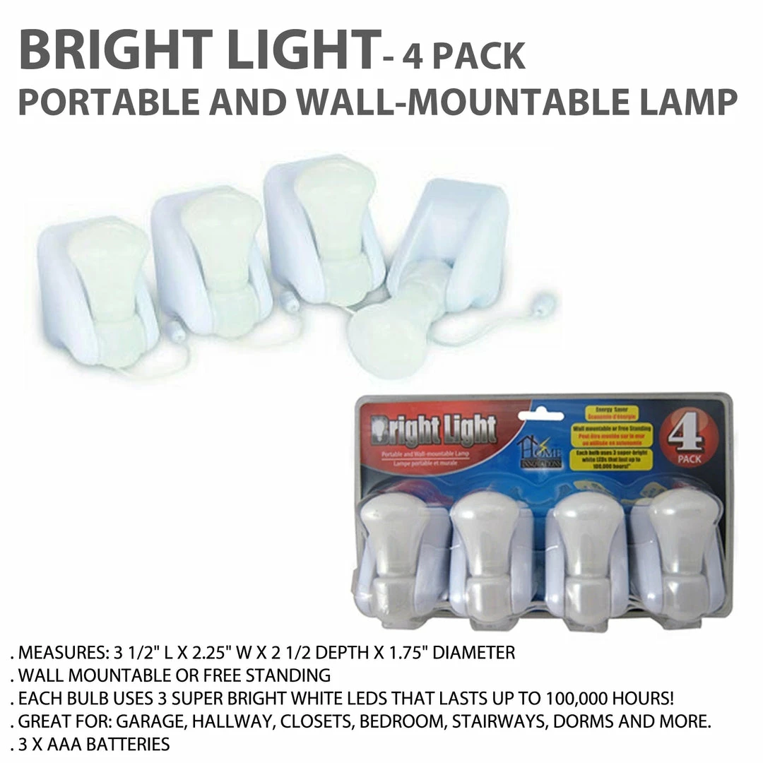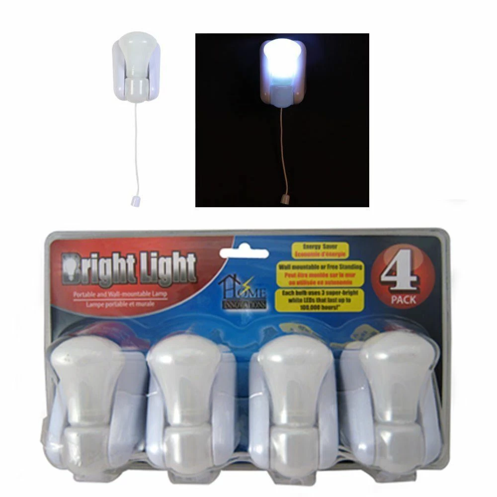 4 Bright Light LED Stick Up Pull Chain Battery Powered Bulb Portable Mount Lamp