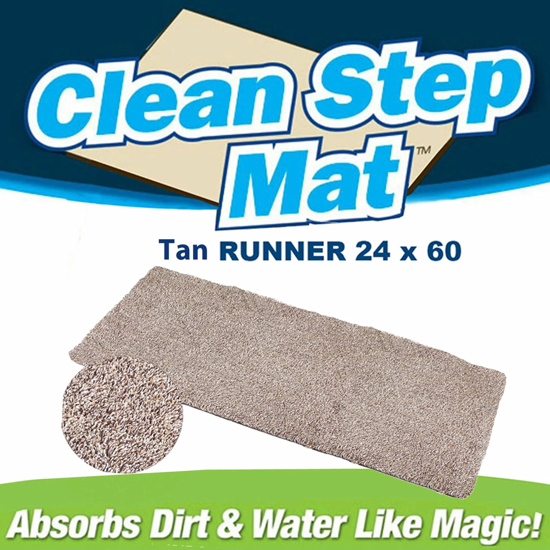 Clean Step Mat Runner Tan- Just like the Original Clean Step Mat but in a new larger size! Super absorbent runner . Absorbs mud like magic! Just step to clean, no need to wipe your feet. Clean Step Mat absorbs mud like magic! Clean Step Mat Runner, the super absorbent doormat traps dirt and water instantly, keeping floors clean and dry. Non-slip latex backing won’t slip or scuff floors. Low profile design so doors won’t get stuck. Machine washable. Clean Step Mat’s secret is millions of super absorbent fibers that absorb mud and water like magic. Just step to clean, No need to wipe your feet! Clean Step Mat Runner, soaks up mud, rain, snow, slush and sleet. No more messy floors. Great for the front door, back door, garage door or wherever there is a door! Perfect for kids and pets.The secret is the millions of super absorbent fibers that remove mud and water from shows instantly. Made of 55% cotton and 45% microfiber. Standard sized runner 24″ x 60″. This item ships in mail order (non retail) packaging. Includes: 1 x Clean Step Mat Runner 24 x 60- Tan