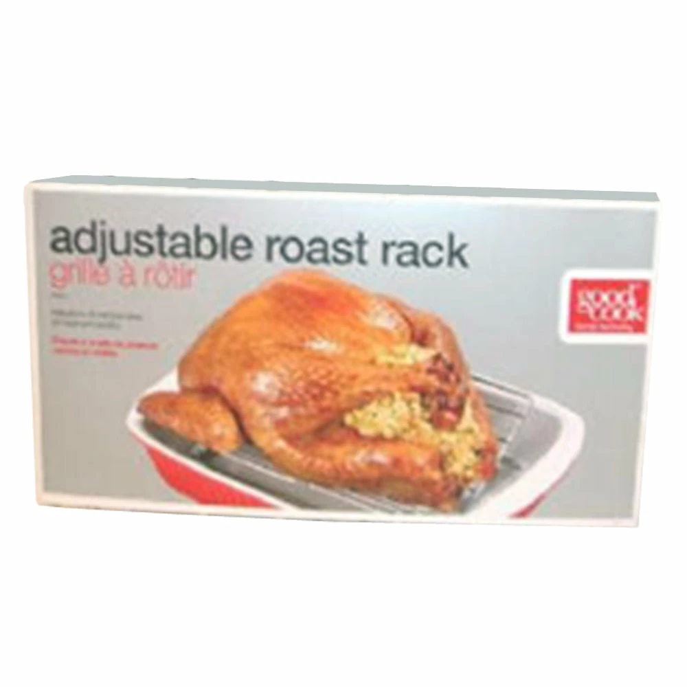 Handy Gourmet Adjustable Silicone Roasting Rack Elevates roasting above unhealthy fat and grease. Adjustable to hold roasts, poultry and more! Adjustable–bends, flexes and holds shape. Helps increase air circulation for faster cooking, roasts and brown evenly and prevents sticking. Use with poultry, roasts, fish, vegetables and more. Flexible silicone bends to size of pan. Not intended for broiler, microwave or stovetop use.Includes: 1 x Handy Gourmet Adjustable Silicone Roasting Rack