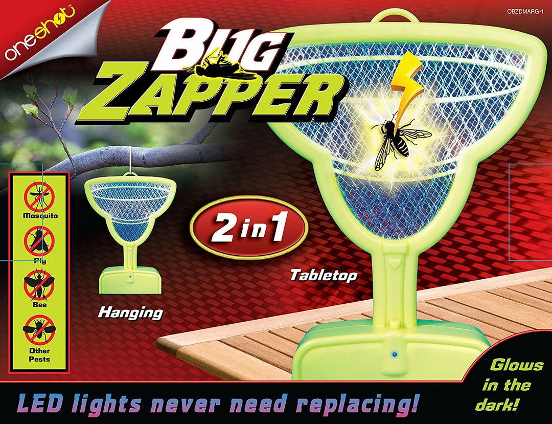 The Ninja 2000V Margarita Glass Bug Zapper features a bright Ultra-Violet LED light perfect for attracting insects away from your patio or deck. Ninja’s 2-in-1 design easily hangs from your porch or sits on a table top and requires 2 x C batteries (not included).