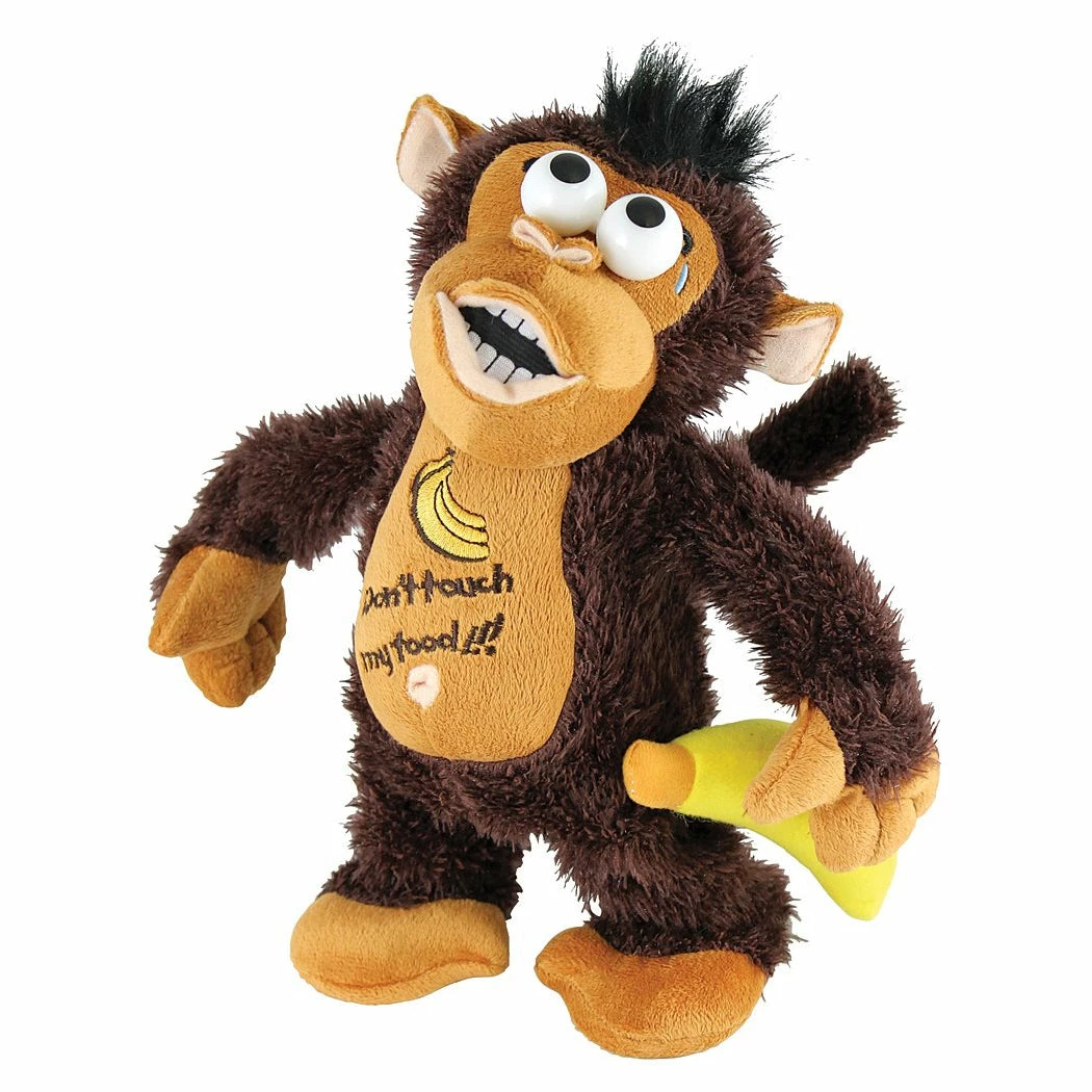 Whatever You Do, Don’t Touch His Food! Pay attention to the warning across his belly, because if you take the banana out of his hand, he goes bananas! Bouncing, flailing, wailing–all kinds of monkey business, until you return his banana to his hand and then he sighs contentedly! Pure silliness and laughs for all ages!