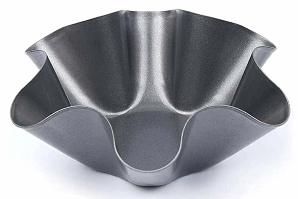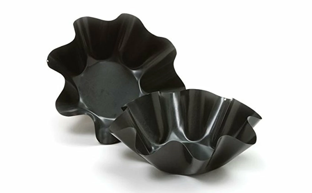 Create taco salad shells, salsa & guacamole dip bowls and much more with this 2-piece Tortilla Baking Bowls Set. Featuring durable metal baking bowls in a wavy design. Easily make healthy baked tortilla shells by pressing a tortilla into the mold and baking in oven for 5 minutes. Each bowl measures approximately 6.25″ wide x 2.25″ deep. Dishwasher safe. Comes packaged in a hanging box. Box measures approximately 6.375″ x 2.75″ x 7.375″.