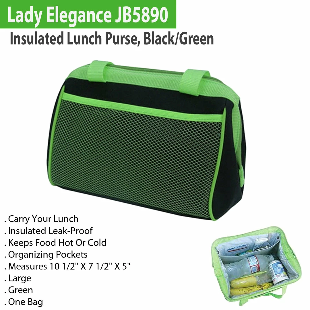 TVTimeDirect Lady Elegance JB5890 Insulated Lunch Purse, Black/Green