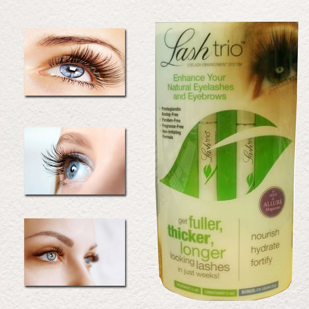 Lash Trio Eyelash Enhancement System Enhance your natural eyelashes and eyebrows with Lash Trio. Get fuller, thicker and longer looking lashes in just weeks. Nourish, hydrate and fortify with one easy kit. Great, bold beautiful lashes have never been easier with Lash Trio’s eyelash system. Lash trio’s transparent paraben-free treatment and conditioner utilizes natural extracts, vitamins and powerful peptides to fortify and enhance your natural lashes while protecting them from damage. You will noticeably improve the look of volume, texture and density. Trio kit includes: Eyelash Treatment- Nourish and fortify lashes. Helps condition and strengthen lases Eyelash Conditioner- Helps to hydrate and condition your existing lashes to build stronger, silkier, fuller lashes that appear longer in length Eye Cream- Packed with powerful polypeptides to help reduce the appearance of wrinkles, dark circles and puffiness. Rich moisturizers help tighten and firm skin around the eyes. As seen in Allure magazine Features: Prostaglandin Analog free Paraben free Fragrance free Non irritating formula Includes: 1 x Eyelash Treatment- 3 ml 1 x Eyelash Conditioner- 3 ml 1 x Eye cream- 8 g