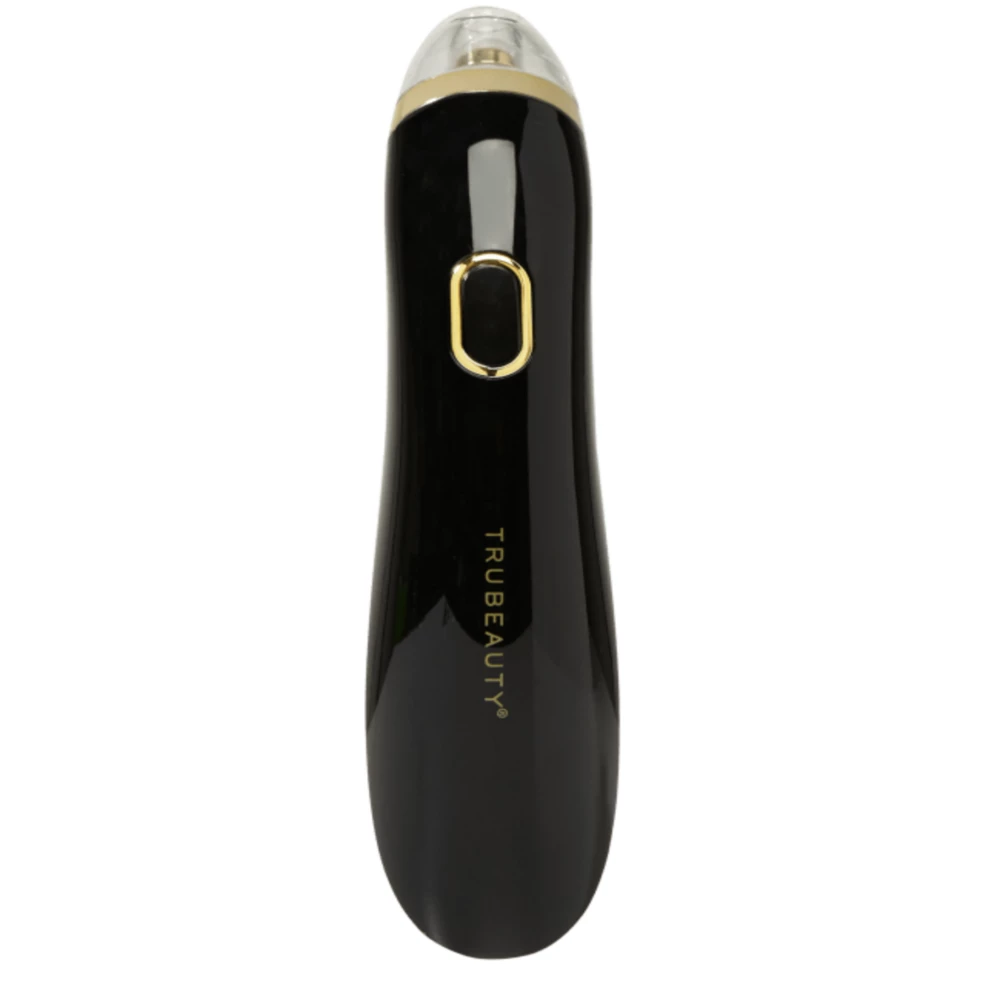 The Blemish Kit Rechargeable Black Microderm Vaccum Wand by TRUBEAUTY helps reset and refine skin for a smoother, brighter complexion. Safe and easy to use. Helps reduce the appearance of large pores. Includes 1 rechargeable pore vacuum, 4 suction heads, 5 dual-ended extraction tools, and a USB cord. The suction heads include oval, large, precision, and microcrystalline. The extraction tools include lancets, flat loops, wire loops, and spoon extractors.