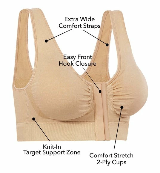 No more painful straps or underwires. The seamless design is invisible, and the Miracle Bamboo Bra contours to your shape with all day comfort and support, it has an easy front closure, and best of all, it’s machine washable!